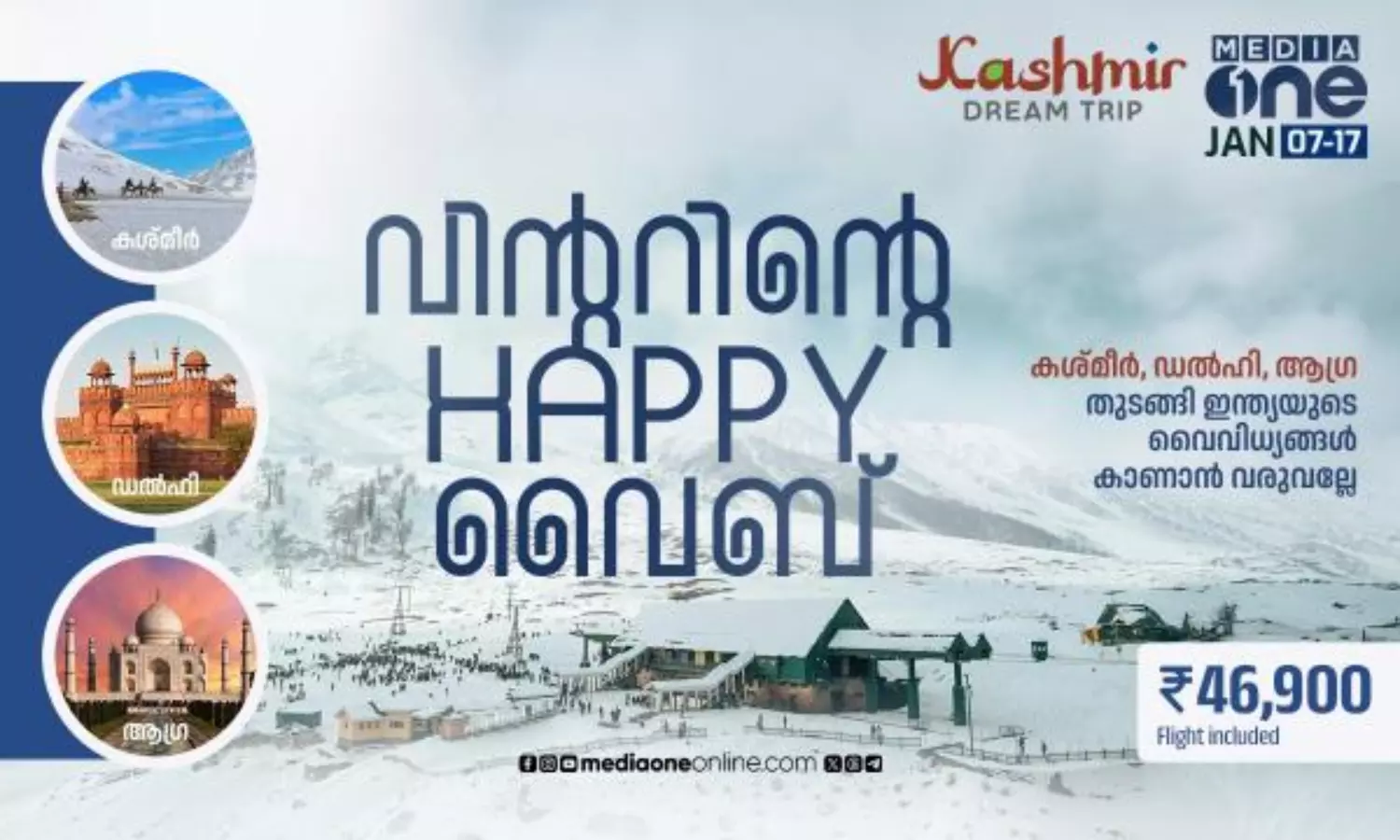 ഒറ്റയാത്രയിൽ ഇതെല്ലാം ഉൾക്കൊള്ളിച്ച് യാത്രികരെ ക്ഷണിക്കുകയാണ് മീഡിയവൺ വിന്റർ എക്സ്പിഡിഷൻ. കശ്മീർ, ഡൽഹി, ആഗ്ര എന്നിവിടങ്ങൾ സന്ദർശിക്കാനുള്ള അവസരമാണ് ഒരുക്കിയിരിക്കുന്നത്. ജനുവരി ഏഴ് മുതൽ 17 വരെ സംഘടിപ്പിക്കുന്ന യാത്രയുടെ ചെലവ് ട്രെയിൻ ടിക്കറ്റ് ചാർജടക്കം 46,900 രൂപയാണ്. സഞ്ചാരിയും മാധ്യമപ്രവർത്തകനുമായ മുജീബ് റഹ്മാനാണ് യാത്ര നയിക്കുന്നത്. താത്പര്യമുള്ളവർക്ക് 7591900633 എന്ന നമ്പറിൽ വിളിച്ചോ, destinations.mediaoneonline.com എന്ന വെബ്സൈറ്റ് സന്ദർശിച്ചോ അല്ലെങ്കിൽ തന്നിരിക്കുന്ന ലിങ്കിൽ ക്ലിക്ക് ചെയ്തോ രജിസ്റ്റർ ചെയ്യാവുന്നതാണ്.