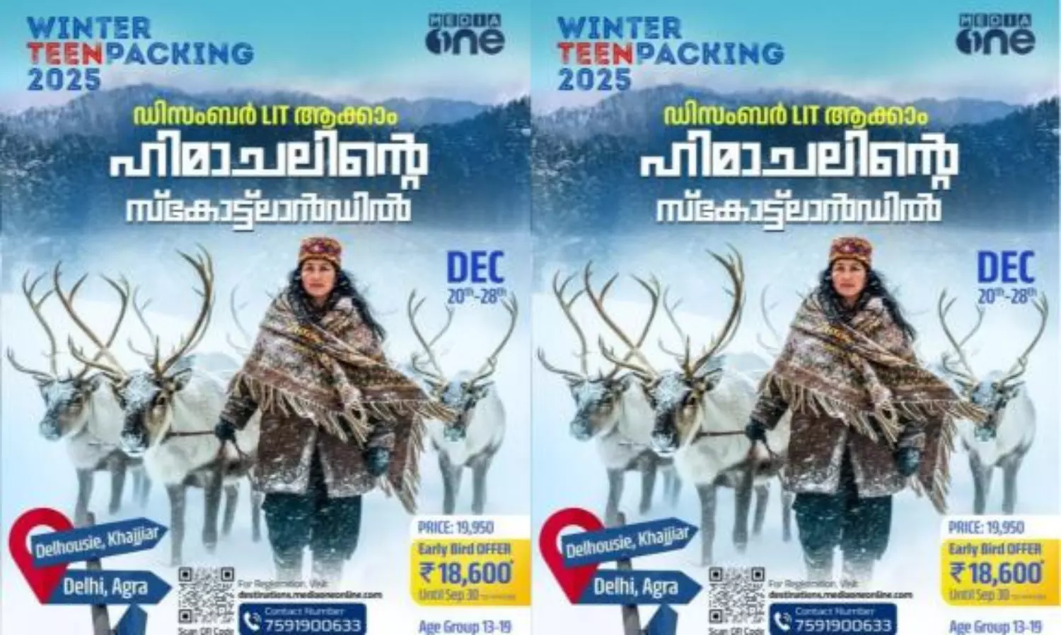 ഈ ഡിസംബറിൽ മഞ്ഞുമൂടി നിൽക്കുന്ന ഹിമാചലിന്റെ മിനി സ്കോട്ട്ലാൻഡ് നിങ്ങളെ വിളിക്കുന്നുണ്ട്, ഈ വർഷാവസനത്തിന് സാഹസവും ആവേശവും സൗഹൃദവും നിറയ്ക്കാൻ. 13 മുതൽ 19 വരെയുള്ള കൗമാരക്കാർക്കു വേണ്ടിയാണ് മീഡിയവൺ വിന്റർ ടീൻ പാക്കിങ് (Winter Teen Packing) എന്ന പേരിൽ ഡൽഹി, ആഗ്ര, ഡൽഹൗസി, ഖജ്ജിയാർ എന്നിവിടങ്ങളിലേക്ക് 9 ദിവസത്തെ യാത്ര സംഘടിപ്പിക്കുന്നത്.
