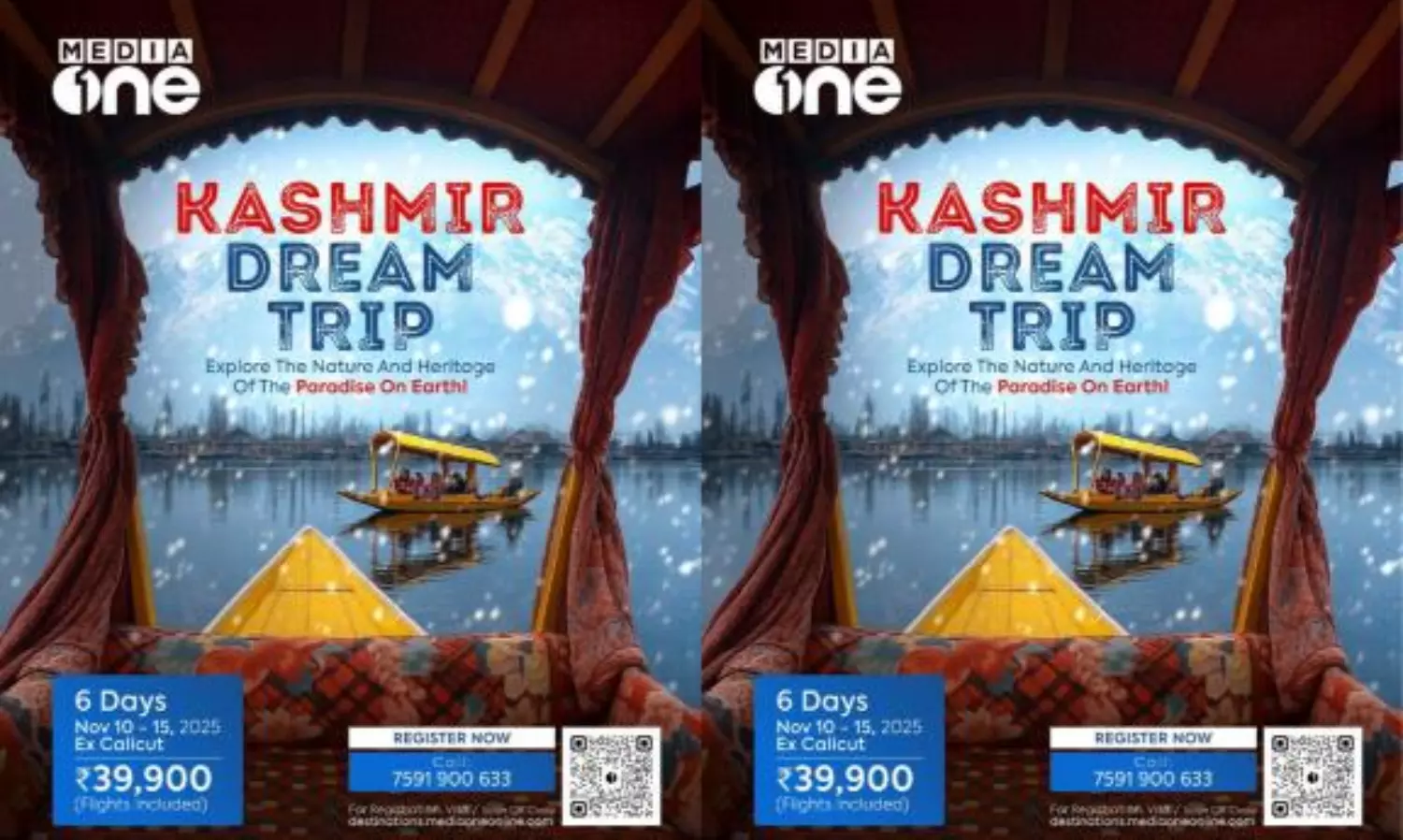 നവംബർ 10 മുതൽ 15 വരെയുള്ള യാത്രയുടെ ചെലവ് ഫ്ലൈറ്റ് ചാർജ് അടക്കം 39,900 രൂപയാണ്. താത്പര്യമുള്ളവർക്ക് 7591900633 എന്ന നമ്പറിൽ വിളിച്ചോ, destinations.mediaoneonline.com എന്ന വെബ്സൈറ്റ് സന്ദർശിച്ചോ രജിസ്റ്റർ ചെയ്യാവുന്നതാണ്.