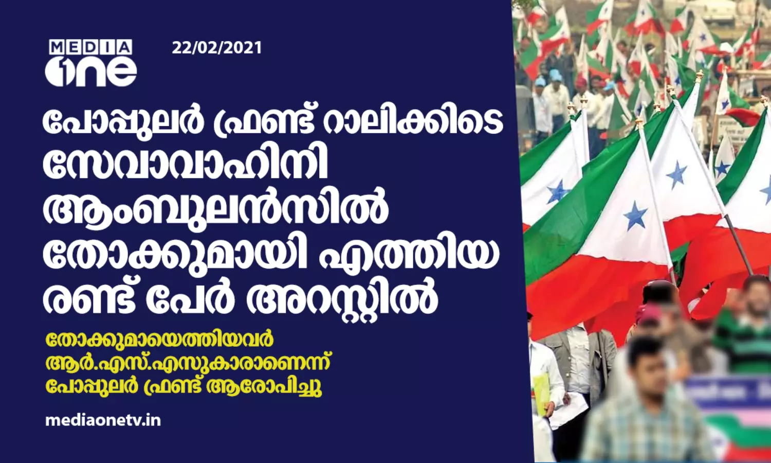 പോപ്പുലര് ഫ്രണ്ട് റാലിക്കിടെ സേവാവാഹിനി ആംബുലന്സില് തോക്കുമായി എത്തിയ രണ്ട് പേര് അറസ്റ്റില്