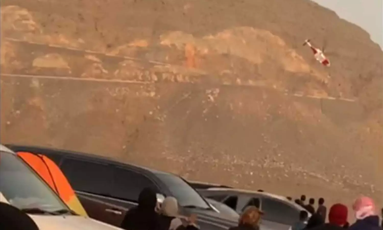 യു.എ.ഇ സമയം വൈകീട്ട് ആറര മണിയോടെയായിരുന്നു ദുരന്തം. ഹെലികോപ്റ്റർ നിയന്ത്രണം വിട്ട് മലയിടുക്കിൽ തകർന്ന് വീണ് കത്തി കൂറ്റൻ മലനിരയിൽ സ്ഥാപിച്ച സിപ് ലൈൻ കാബിളിൽ തട്ടിയാണ്