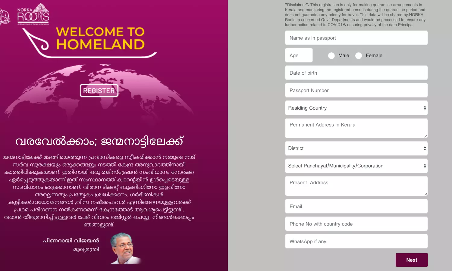 പ്രവാസി മലയാളികൾക്ക് കേരളത്തിലേക്ക് തിരിച്ചുവരാനുള്ള നോർക്ക രജിസ്ട്രേഷന് താഴെയുള്ള ലിങ്കിൽ അമർത്തുക.