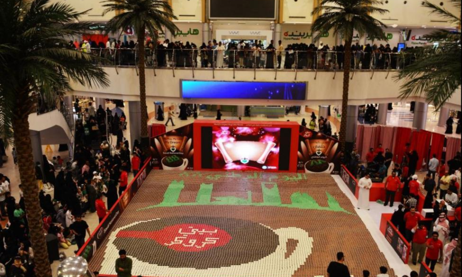 ആയിരക്കണക്കിന് കപ്പുകളില് നിര്മ്മിച്ചെടുത്ത ലോകത്തിലെ ഏറ്റവും വലിയ മഗ്ഗ് കേക്ക് മൊസൈക്കാണ് ജിദ്ദയിലെ ആന്തലുസ് മാളില് ഒരുക്കിയത്.