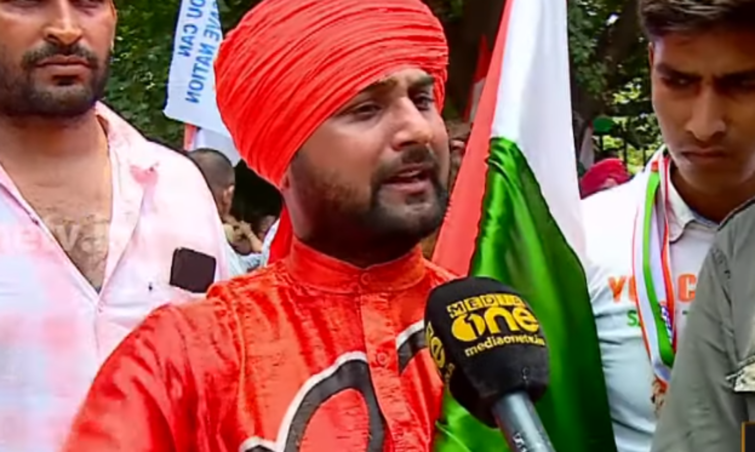 പണ്ഡിറ്റ് ദിനേശ് ശര്മ്മ. കോണ്ഗ്രസുകാരുടെ ഫ്ലാഗ് മനുഷ്യന്. രാഹുല് ഗാന്ധി എവിടെയുണ്ടോ അവിടെയുണ്ടാകും ഹരിയാന സ്വദേശിയായ ഈ നിയമ വിദ്യാര്ത്ഥി