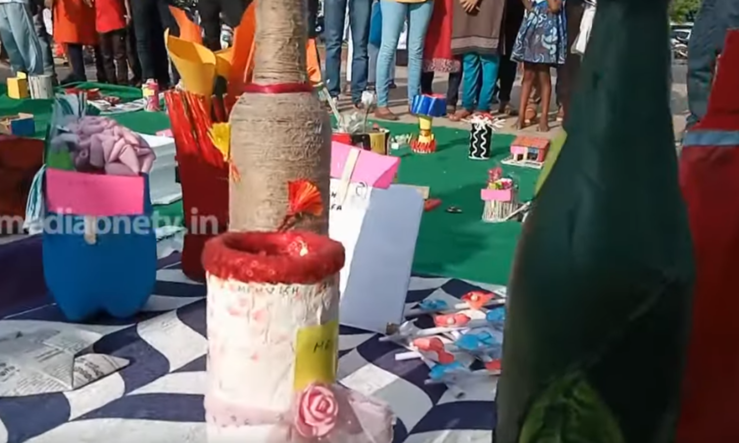 ബീച്ചില് അലക്ഷ്യമായി വലിച്ചെറിയുന്ന വസ്തുക്കള് കൊണ്ട് അലങ്കാര വസ്തുക്കള് നിര്മിച്ച് വിദ്യാര്ഥികള്