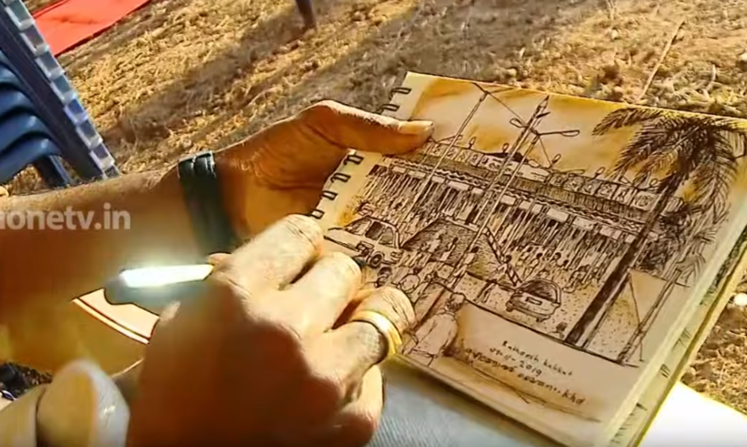 കലോത്സവ വേദികളെ പേപ്പറിലേക്ക് പകര്‍ത്തി കാഞ്ഞങ്ങാട്ടെ രതീഷ് കക്കാട്ട്