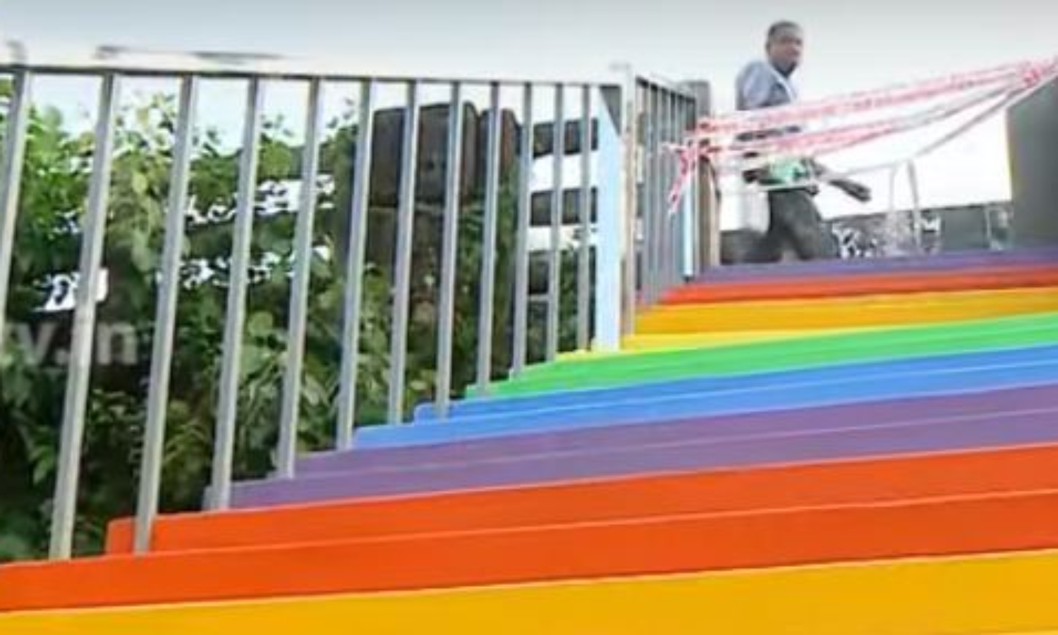 മഴവില്ലഴകില് കോഴിക്കോട് റെയില്വെ മേല്പാലത്തിലേക്കുള്ള പടികള്
