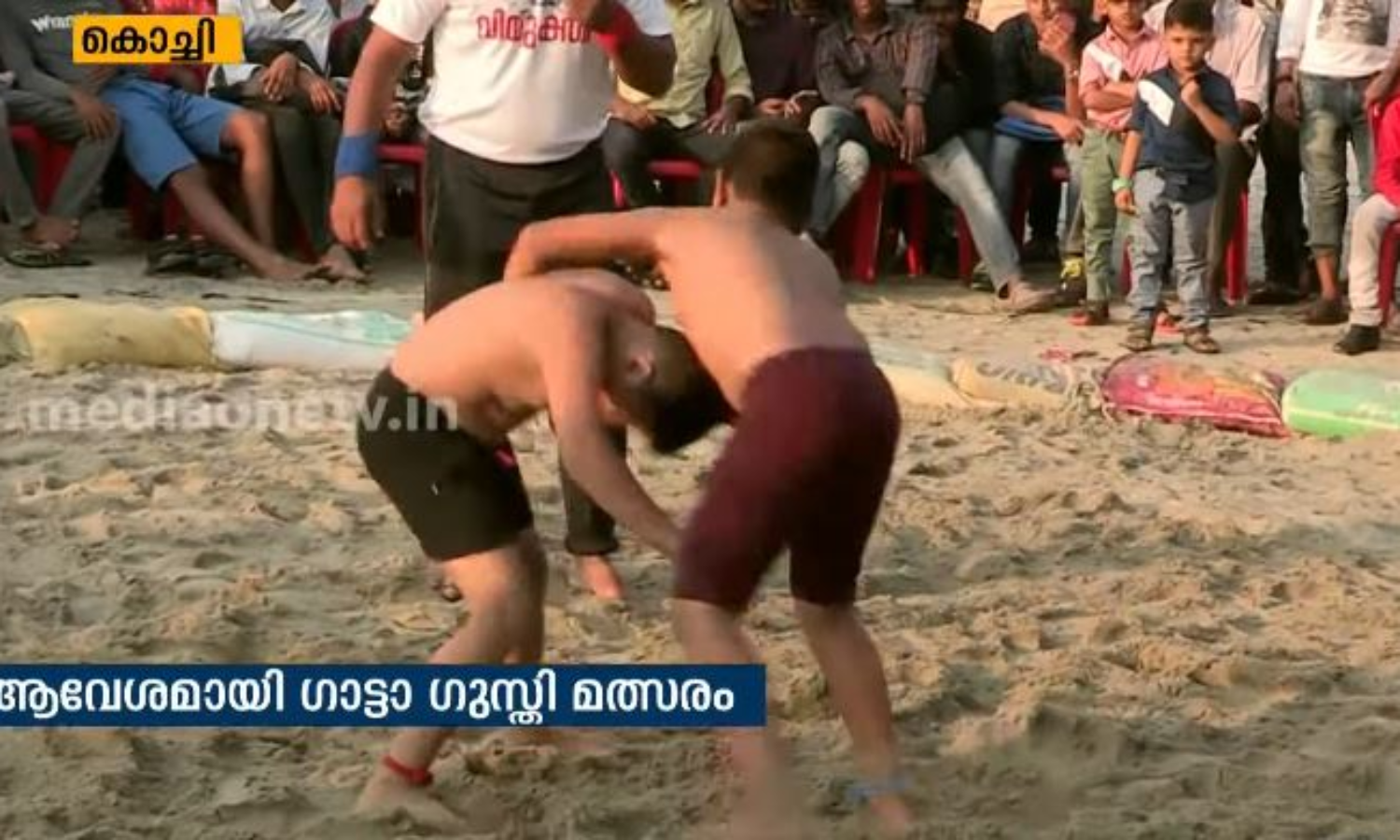 കടൽക്കാഴ്ച ആസ്വദിക്കാന് എത്തിയവരെ ആവേശത്തിലാഴ്ത്തി ഗാട്ടാ ഗുസ്തി മത്സരം. ഫോർട്ട് കൊച്ചി ബീച്ചിൽ സംഘടിപ്പിച്ച മത്സരത്തിൽ 70ഓളം കുട്ടി ഫയൽവാന്മാരാണ് മല്ലടിച്ചത്.