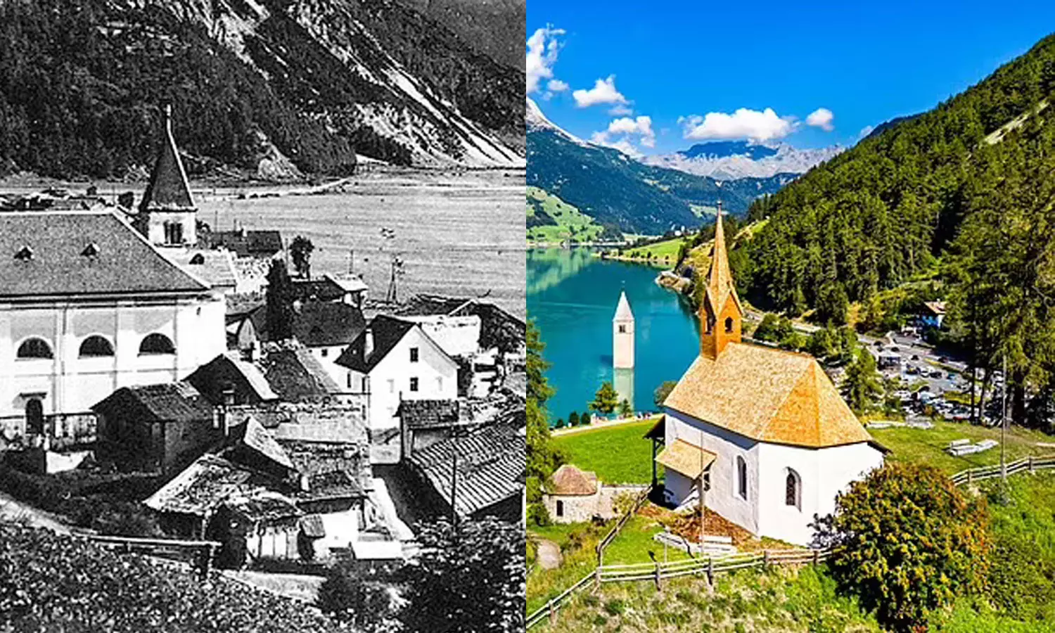 ഗ്രാമത്തിലെ 163 വീടുകൾ തടാകത്തിന്റെ അടിത്തട്ടിലേക്കു പോയപ്പോൾ വെള്ളത്തിനു മുകളിൽ ദൃശ്യമായത് 19-ാം നൂറ്റാണ്ടിൽ നിർമിച്ച ഒരു പള്ളിയുടെ ഗോപുരം മാത്രമാണ്. വെള്ളത്തിലെ ഗോപുരം കാണാൻ ആളുകൾ കൂട്ടമായി എത്തിയതോടെ വടക്കുകിഴക്കൻ നഗരമായ ദക്ഷിണ ടിറോളിലെ റെസ്യ തടാകം ഒരു വിനോദസഞ്ചാര കേന്ദ്രമാവുകയും ചെയ്തു.