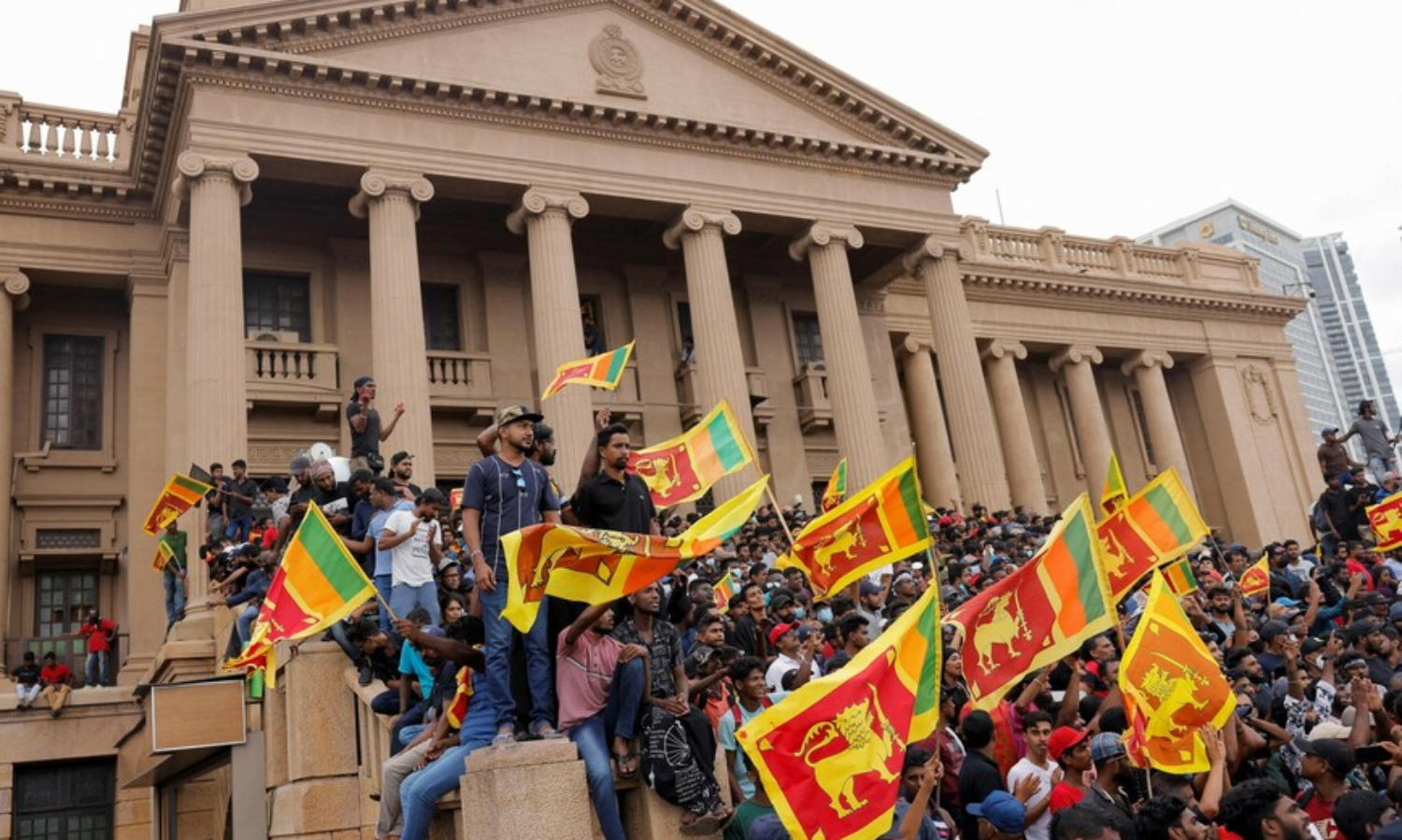 ഇന്ധനവും ഭക്ഷണവും ഇല്ലാതായതിനെ തുടർന്ന് വലിയ പ്രതിഷേധത്തിലായ ശ്രീലങ്കൻ ജനത ശനിയാഴ്ചയാണ് പ്രസിഡന്റിന്റെയും പ്രധാനമന്ത്രിയുടെയും വസതികൾ കയ്യേറിയത്. പതിനായിരക്കണക്കിന് പ്രക്ഷോഭകർ ഔദ്യോഗിക മന്ദിരത്തിലേക്ക് പാഞ്ഞെത്തിയതോടെ പ്രസിഡന്റ് ഗോതബയ രജപക്സെ വസതി ഉപേക്ഷിച്ച് രക്ഷപ്പെടുകയായിരുന്നു. പ്രധാനമന്ത്രി റെനിൽ വിക്രമസിംഗെയുടെ വസതിക്ക് പ്രക്ഷോഭകാരികൾ തീയിടുകയും ചെയ്തു. സാമ്പത്തിക പ്രതിസന്ധിക്കൊപ്പം രാഷ്ട്രീയ പ്രതിസന്ധി കൂടി ഉടലെടുത്തതോടെ അടിയന്തരമായി സർവകക്ഷി യോഗം ചേരുകയായിരുന്നു.