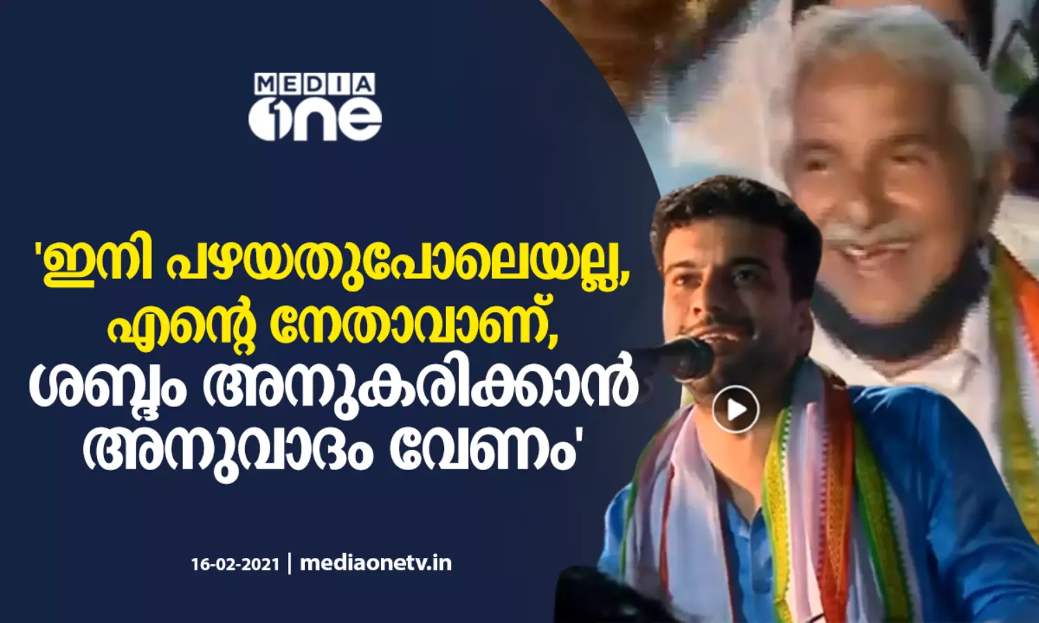 അങ്ങനെ കോണ്ഗ്രസ് പ്രവര്ത്തകര് ആവശ്യം ഉന്നയിച്ചപ്പോള് പിഷാരടി പറഞ്ഞ മറുപടി സദസ്സ് കൈയ്യടിയോടെയാണ് സ്വീകരിച്ചത്. 'ഇനി പഴയതുപോലെയല്ല, ഞങ്ങളുടേയെല്ലാം നേതാവാണ് അദ്ദേഹം, ശബ്ദം അനുകരിക്കാന് അനുവാദം വേണം' രമേശ് പിഷാരടി പറഞ്ഞു. ഉമ്മന് ചാണ്ടി അനുവാദം നല്കുകയും പിഷാരടി അദ്ദേഹത്തിന്റെ ശബ്ദം അനുകരിക്കുകയും ചെയ്തു. ഉമ്മന് ചാണ്ടി പത്രസമ്മേളനത്തെ അഭിമുഖീകരിക്കുന്ന രീതിയാണ് രമേശ് പിഷാരടി വേദിയില് അവതരിപ്പിച്ചത്. വേദിയില് ഇരുന്ന ഉമ്മന് ചാണ്ടിയും ചെന്നിത്തലയും അടക്കമുള്ള നേതാക്കള് നിറഞ്ഞ ചിരിയോടെയാണ് പിഷാരടിയുടെ അനുകരണത്തെ സ്വീകരിച്ചത്.