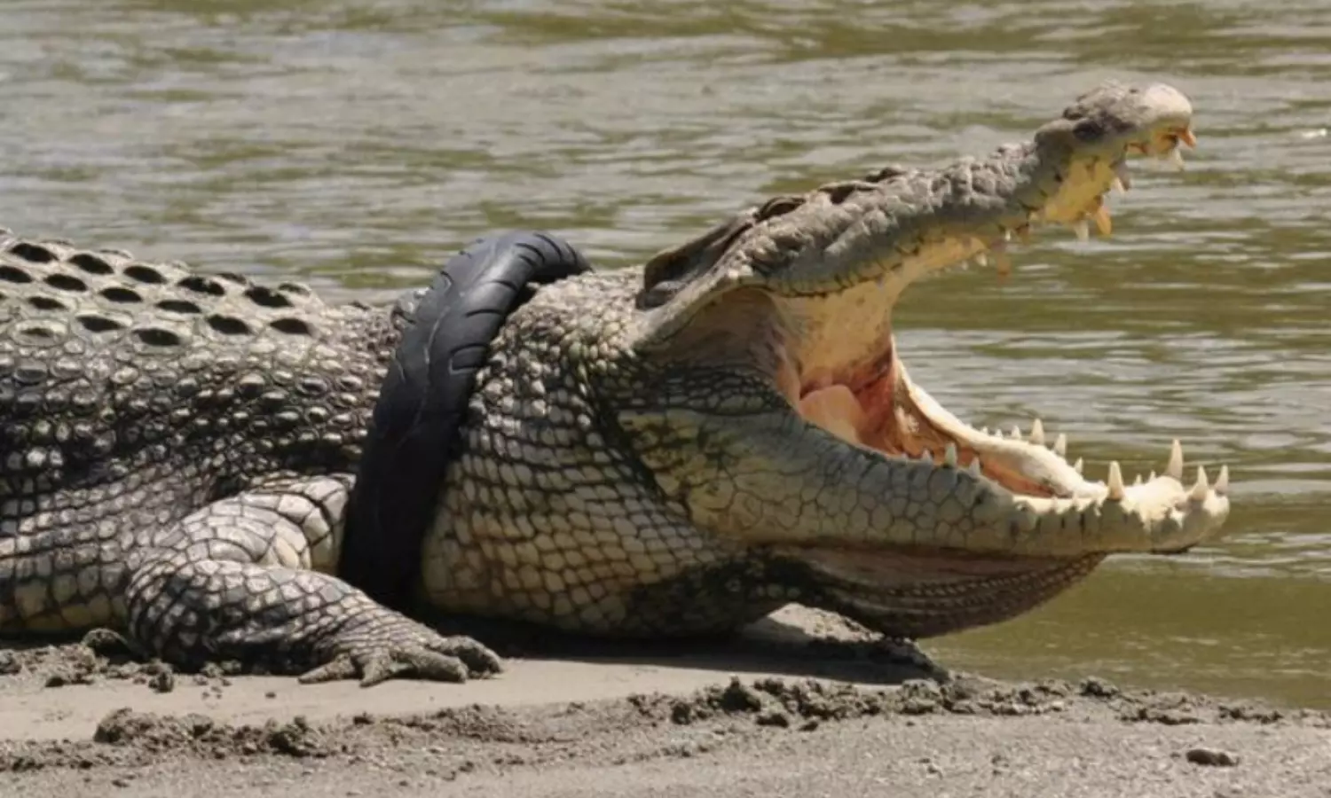 കഴുത്തിൽ ടയറുമായി ആറ് വർഷം; ഭീമൻ മുതലയെ മോചിപ്പിച്ച് മൃഗസ്നേഹി- വീഡിയോ