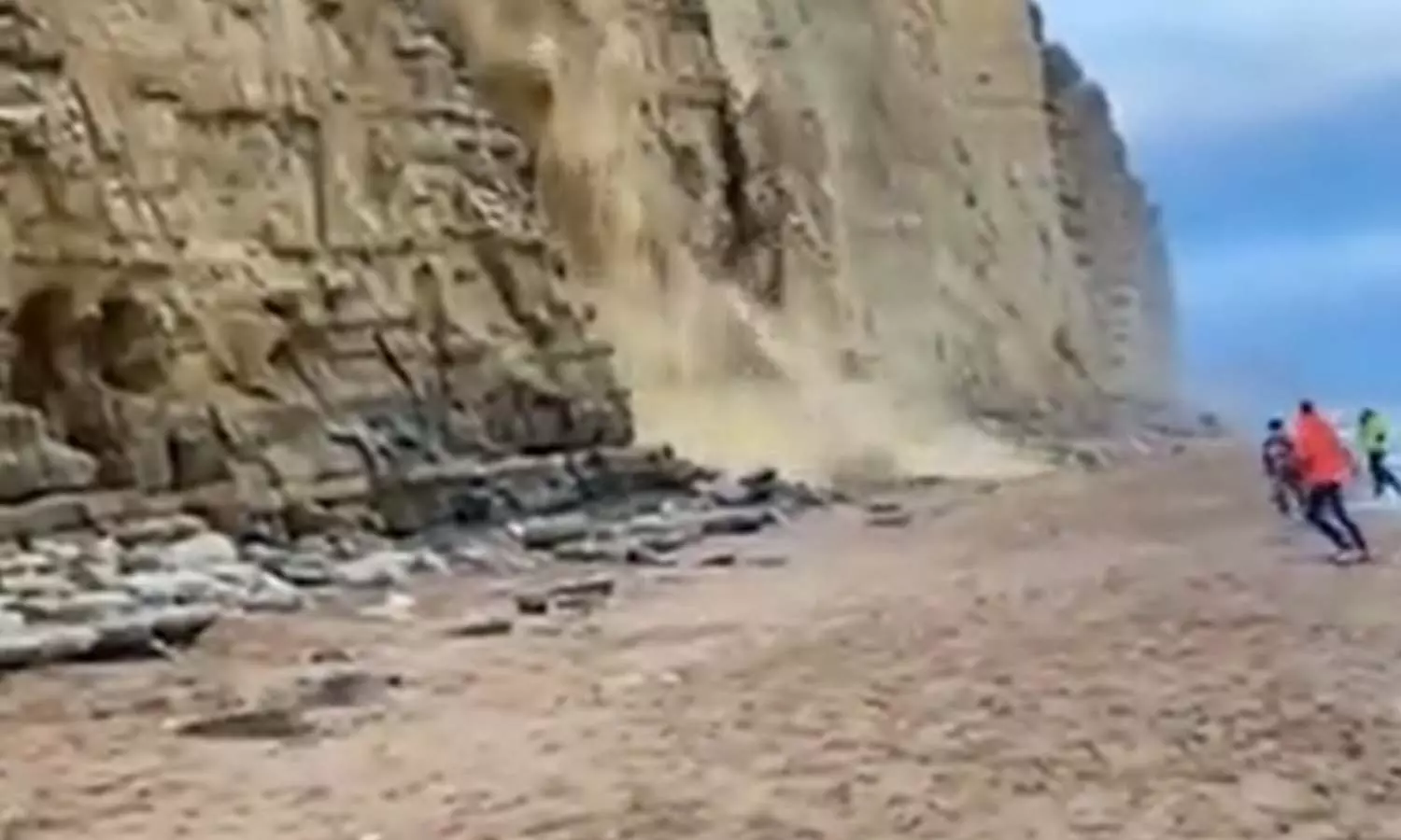 ബ്രിട്ടനിൽ വിനോദസഞ്ചാരികൾക്ക് സമീപത്തേക്ക് പാറക്കെട്ടുകൾ ഇടിഞ്ഞുവീണു. ബ്രിട്ടനിലെ പ്രമുഖ വിനോദസഞ്ചാര കേന്ദ്രമായ ഡോർസെറ്റിലെ വെസ്റ്റ് ബേയിലാണ് സംഭവം. അപകടത്തിന്റെ വീഡിയോ ദൃശ്യങ്ങൾ സോഷ്യൽ മീഡിയയിൽ പ്രചരിക്കുന്നുണ്ട്. 150 അടി ഉയരത്തിൽ നിന്നാണ് പാറക്കെട്ടുകൾ ഇടിഞ്ഞുവീണതെന്ന് റിപ്പോർട്ടുകൾ പറയുന്നു.