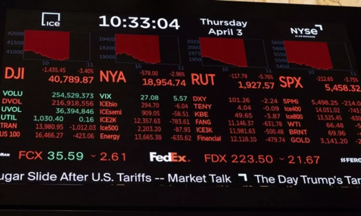 തിരിച്ചടിച്ച് പകരച്ചുങ്കം; അമേരിക്കൻ ഓഹരി വിപണിയിൽ വൻ ഇടിവ്