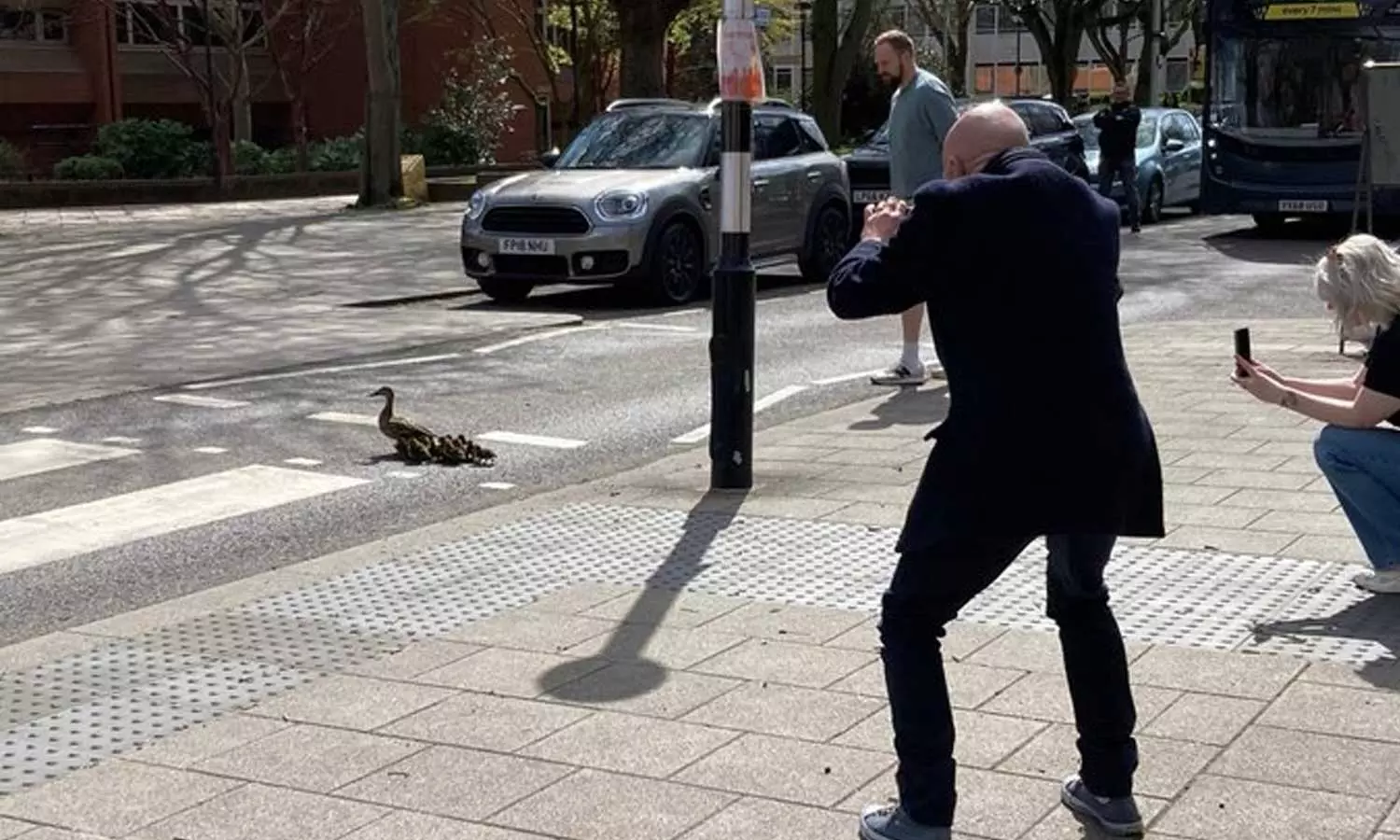 ഇംഗ്ലണ്ടിലെ കവെൻട്രിയിലാണ് സംഭവം. അമ്മത്താറാവിനൊപ്പം 12 കുഞ്ഞുങ്ങളാണ് സീബ്രാലൈനിലൂടെ റോഡ് മുറിച്ചുകടന്നത്.