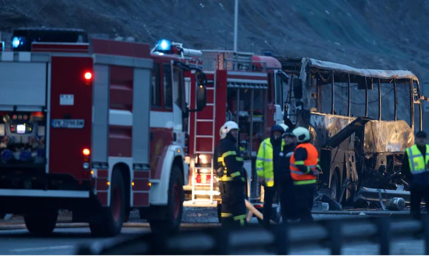 പടിഞ്ഞാറന്‍ ബള്‍ഗേറിയയില്‍ ബസിന് തീ പിടിച്ച് 12 കുട്ടികളടക്കം 45 പേര്‍ മരിച്ചു. കൊല്ലപ്പെട്ടവരില്‍ ഭൂരിഭാഗവും മാസിഡോണിയന്‍ വിനോദസഞ്ചാരികളാണ്. ചൊവ്വാഴ്ച പുലര്‍ച്ചെ രണ്ടു മണിക്ക് സോഫിയയിൽ നിന്ന് 45 കിലോമീറ്റർ (28 മൈൽ) പടിഞ്ഞാറ് സ്ട്രുമ ഹൈവേയിലാണ് അപകടമുണ്ടായത്.