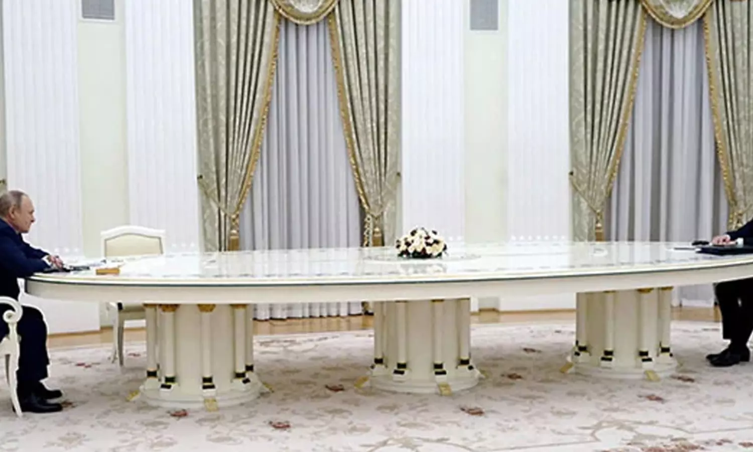 ഇരുനേതാക്കളും ദൂരത്തിരുന്ന് ചർച്ച നടത്തുന്ന ചിത്രം സാമൂഹിക മാധ്യമങ്ങളിൽ ഏറെ ചർച്ചയായിരുന്നു. തുടർന്നാണ് നീളൻ മേശയുടെ പിറകിലെ രഹസ്യം വെള്ളിയാഴ്ച റഷ്യ വെളിപ്പെടുത്തിയത്