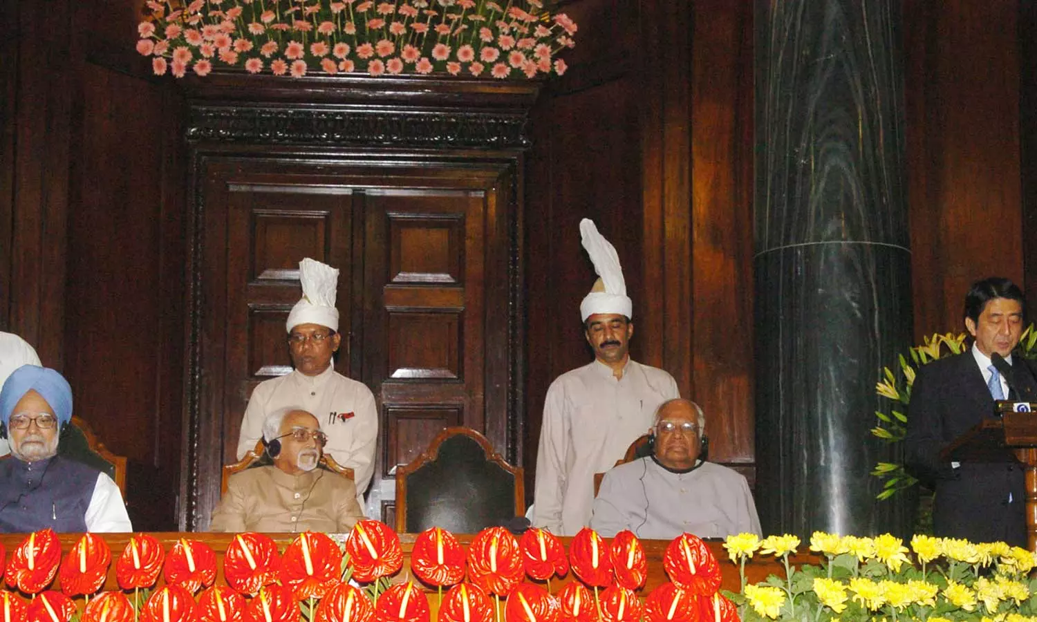 2006ൽ ജപ്പാന്റെ പ്രധാനമന്ത്രിയായി തെരഞ്ഞെടുക്കപ്പെട്ട ആദ്യ ഊഴത്തിൽ തന്നെ ഷിൻസോ ആബെ ഇന്ത്യയിലെത്തി. മൻമോഹൻ സിങ് പ്രധാനമന്ത്രിയായിരിക്കെ അദ്ദേഹം പാർലമെന്റിനെ അഭിസംബോധന ചെയ്ത് സംസാരിക്കുകയും ചെയ്തു.
