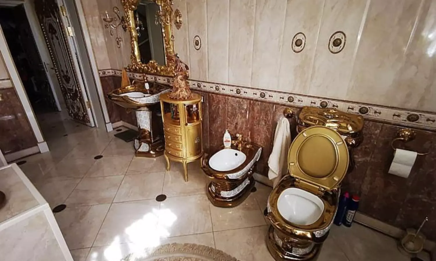 എല്ലാം ചുറ്റിക്കണ്ട് കുളിമുറിയിലെത്തിയപ്പോഴാണ് അന്വേഷണസംഘം ശരിക്കും പകച്ചുപോയത്. മുന്നിൽ കാണുന്നത് സ്വർണം പൂശിയ രണ്ട് ടോയ്ലെറ്റുകൾ. വലിയ ബാത്ത് ടബ്ബ്. മുകളിൽ വിലപിടിപ്പുള്ള ദീപങ്ങൾ...!!