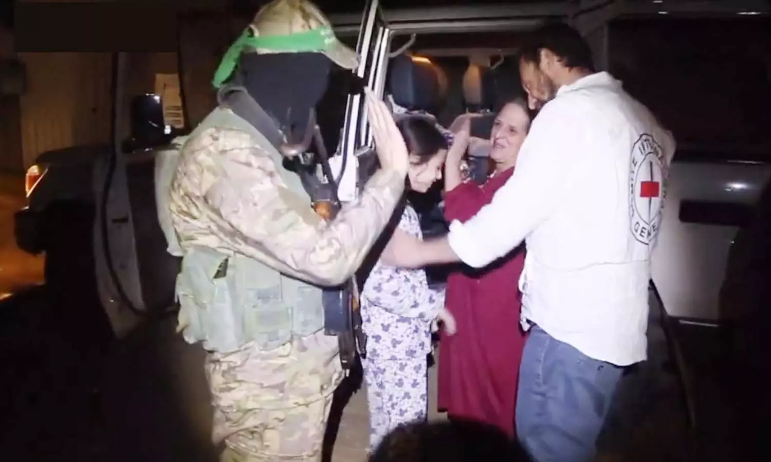 ചിരിച്ചുകൊണ്ടാണ് ഇവർ ഖസ്സാം സൈനികർക്കൊപ്പം അതിർത്തിയിലേക്കു പോകുന്നത്. സന്നദ്ധപ്രവർത്തകർക്കൊപ്പം ചേർന്ന ശേഷം ഖസ്സാം അംഗങ്ങളെ എല്ലാവരും കൈവീശി അഭിവാദ്യം ചെയ്യുന്നതും ദൃശ്യങ്ങളിൽ വ്യക്തമാണ്. പുഞ്ചിരിയോടെ യാത്രപറഞ്ഞാണു പലരും റെഡ്ക്രോസ് വാഹനത്തിൽ നാട്ടിലേക്കു തിരിച്ചത്.