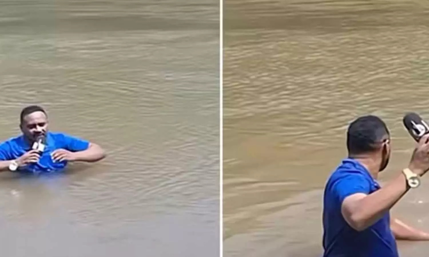 ബ്രസീലിയ: പതിമൂന്നുകാരിയായ സ്കൂൾ വിദ്യാർഥിനിയെ കാണാതായ നദിയിലിറങ്ങി റിപ്പോര്ട്ട് ചെയ്യുന്നതിനിടെ മാധ്യമപ്രവര്ത്തകന് അബദ്ധത്തില് ചവിട്ടിക്കയറിയത് മൃതദേഹത്തില്.ബ്രസീലിലാണ് നടക്കുന്ന സംഭവം നടന്നത്.ബകാബലിലെ മെയാരിം നദിയിലാണ് വിദ്യാര്ഥിയെ കാണാതായത്. നദിയില് കുളിക്കാനിറങ്ങിയപ്പോഴാണ് റൈസ എന്ന പെണ്കുട്ടിയെ കാണാതാവുന്നത്.പെണ്കുട്ടിക്കായി തിരച്ചിലുകള് പുരോഗമിക്കുന്നതിനിടെയാണ് ലെനിൽഡോ ഫ്രസാവോ എന്ന മാധ്യമപ്രവര്ത്തകന് റിപ്പോര്ട്ടിങ്ങിനായി ഇവിടെ എത്തിയത്.