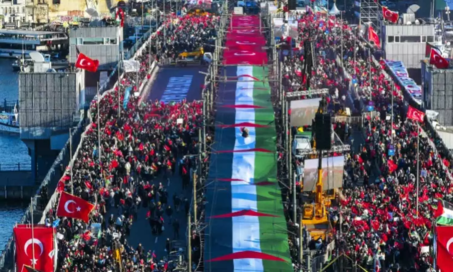 ഇസ്തംബൂള്‍: ഗസ്സക്ക് ഐക്യദാർഢ്യം പ്രഖ്യാപിച്ച് തുര്‍ക്കിയിലെ പ്രധാന നഗരമായ ഇസ്താംബൂളിൽ കൂറ്റന്‍ റാലി. ഗസ്സയിലെ ഇസ്രായേൽ വംശഹത്യയെ അപലപിച്ചും വെടിനിർത്തൽ ആശ്വാസം നൽകിയെന്ന അവകാശവാദങ്ങളെ തള്ളിപ്പറഞ്ഞും ലക്ഷക്കണക്കിനാളുകളാണ് വ്യാഴാഴ്ച നടന്ന മാര്‍ച്ചിലും പ്രതിഷേധത്തിലും പങ്കെടുത്തത്.