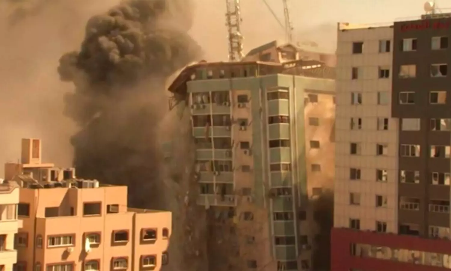 ഗസ്സയിലെ 11 നിലയുള്ള അൽജലാ കെട്ടിടമാണ് ശനിയാഴ്ച ഇസ്രായേൽ പൂർണമായും ബോംബിട്ട് തകർത്തത്. കൃത്യമായ മുന്നറിയിപ്പുകളോടെയായിരുന്നു മാധ്യമസ്ഥാപനങ്ങളെ ലക്ഷ്യമിട്ടുള്ള ഇസ്രായേൽ ആക്രമണം. അൽജസീറ, അസോഷ്യേറ്റ് പ്രസ്(എപി), മിഡിലീസ്റ്റ് ഐ അടക്കമുള്ള വിദേശ മാധ്യമങ്ങളുടെ ഓഫീസുകളാണ് ഇവിടെ പ്രവർത്തിച്ചിരുന്നത്. ഇതിനു പുറമെ മറ്റ് ബിസിനസ് സ്ഥാപനങ്ങളും ഇവിടെ പ്രവർത്തിച്ചിരുന്നു. ഏതാനും താമസക്കാരും ഇവിടെയുണ്ടായിരുന്നു എന്നാണ് അറിയുന്നത്. മുന്നറിയിപ്പിനെ തുടർന്ന് ഇവിടെയുള്ളവരെ ഒഴിപ്പിച്ചിരുന്നതിനാൽ ആളപമായമുണ്ടായില്ല.