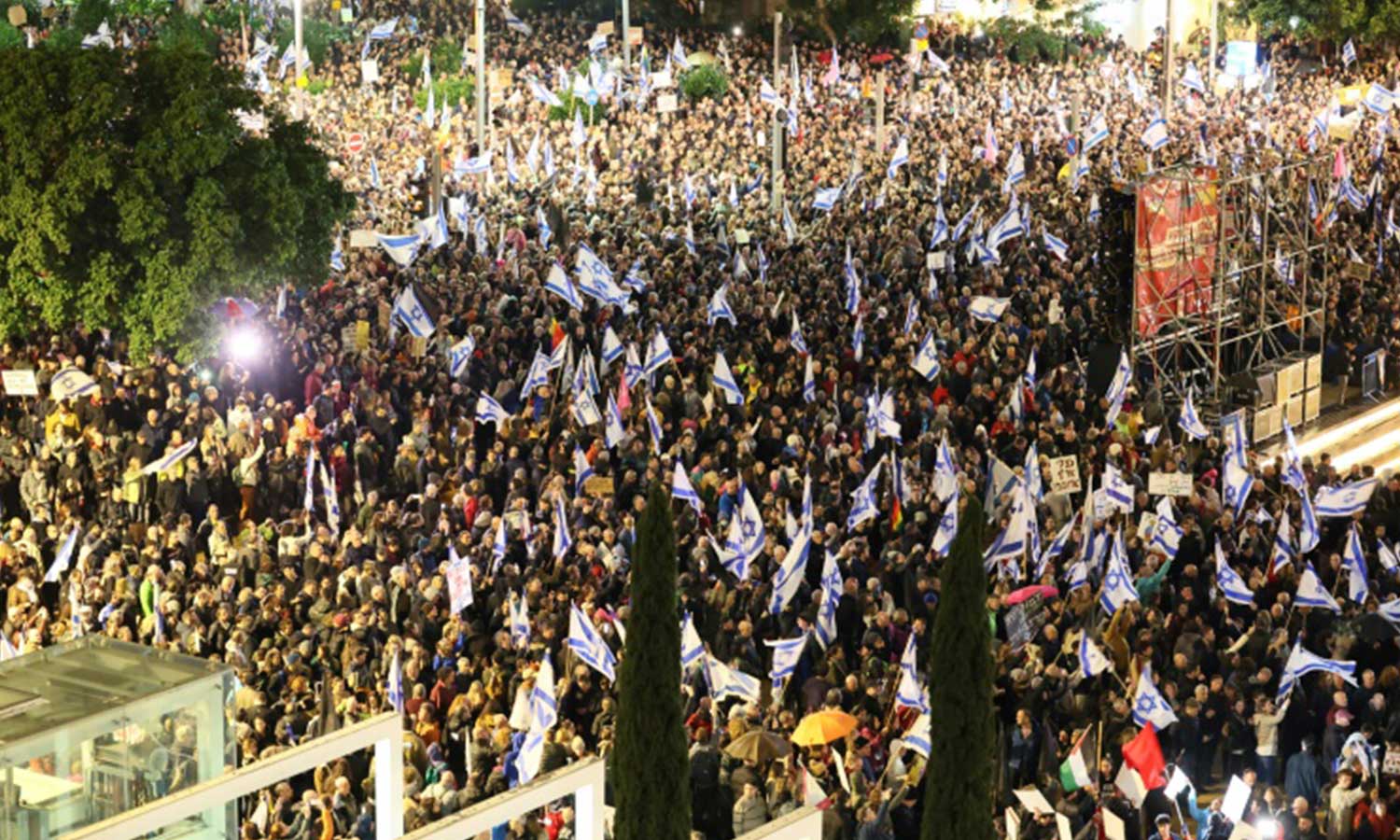 മുൻ പ്രധാനമന്ത്രി യൈർ ലാപിഡ് അടക്കമുള്ള പ്രമുഖർ പ്രക്ഷോഭത്തിന്റെ മുൻനിരയിലുണ്ട്