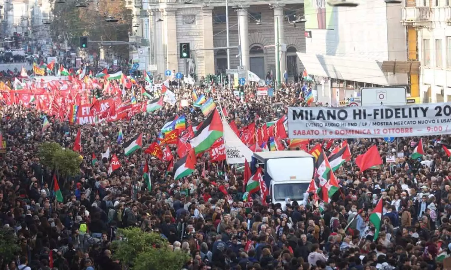 ലിയനാർഡോ ഡാവിഞ്ച് സ്മാരക സ്ക്വയറിൽ ഫലസ്തീൻ പതാകയും 'ഫ്രീ ഫലസ്തീൻ' മുദ്രാവാക്യവുമായി പ്രതിഷേധക്കാർ നിറഞ്ഞു. ഗിനോവയിൽ 40,000 ആളുകളും ബ്രെസ്ചയിൽ 10,000 ആളുകളും പ്രതിഷേധ പരിപാടികളിൽ പങ്കെടുത്തു.