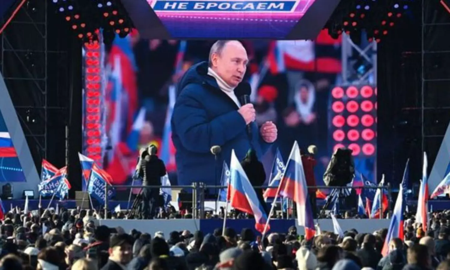 മോസ്കോ: മോസ്കോയിലെ ലൂസ്നികി ഫുട്ബോൾ സ്റ്റേഡിയത്തിൽ ആയിരക്കണക്കിന് അനുയായികളെ അഭിസംബോധന ചെയ്യവെ, പ്രസിഡണ്ട് വ്ളാദിമിർ പുടിന്റെ പ്രസംഗം ഇടക്കുവച്ച് നിർത്തി റഷ്യൻ സ്റ്റേറ്റ് ടിവി. പ്രസംഗത്തിന് പകരം ചടങ്ങിൽ നേരത്തെയുണ്ടായിരുന്ന ദേശസ്നേഹ സംഗീതത്തിന്റെ ക്ലിപ്പാണ് ടിവി കാണിച്ചത്.