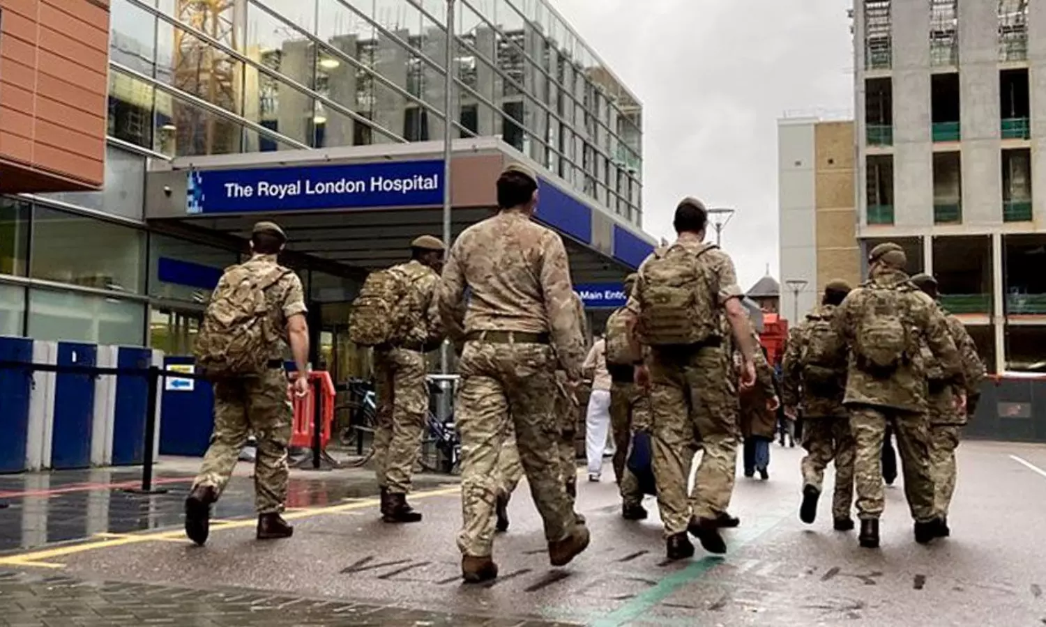 ലണ്ടനിലെ നാഷനൽ ഹെൽത്ത് സർവീസ്(എൻഎച്ച്എസ്) ആശുപത്രികളിലാണ് ജീവനക്കാരുടെ ക്ഷാമത്തെ തുടർന്ന് സൈന്യത്തെ ഇറക്കിയത്. 200 സൈനികരെയാണ് ലണ്ടനിലെ വിവിധ ആശുപത്രികളിൽ കോവിഡ് ചുമതലയേൽപ്പിച്ചിരിക്കുന്നത്. 40 സൈനിക ഡോക്ടർമാർക്ക് പുറമെ 160 സാധാരണ സൈനികരെയുമാണ് പ്രതിരോധ മന്ത്രാലയം അടുത്ത മൂന്ന് ആഴ്ചത്തേക്കായി ആശുപത്രികളിലേക്ക് അയച്ചത്.