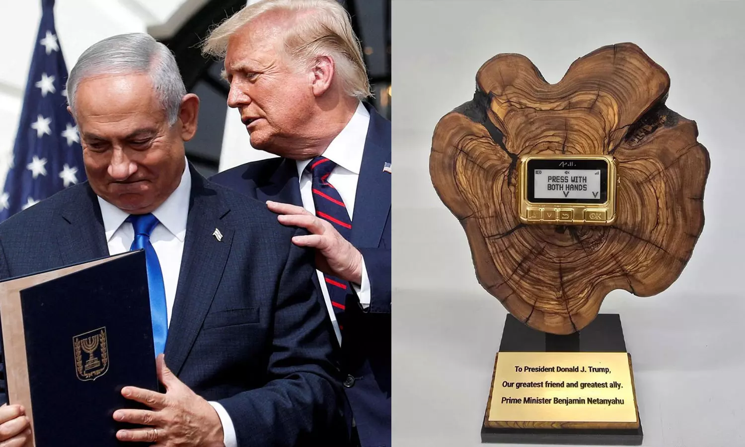 ട്രംപിന് പേജർ സമ്മാനിച്ച് നെതന്യാഹു