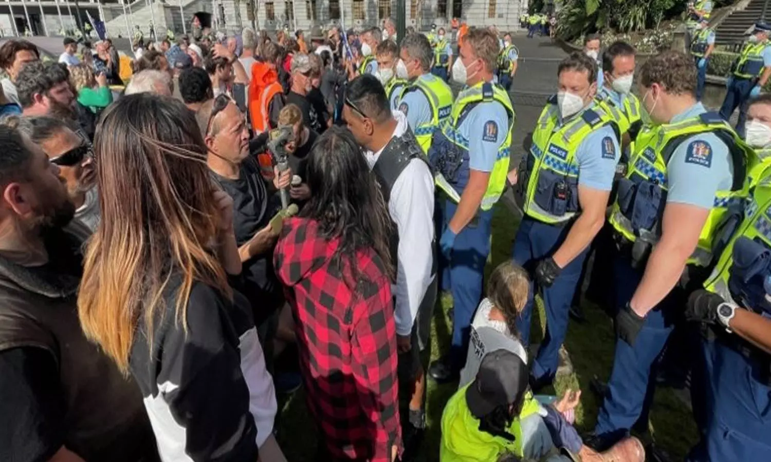 തുടർച്ചയായി ഡ്രം അടിച്ചും ദേശീയ ഗാനം ആലപിച്ചുമാണ് നൂറുകണക്കിന് പ്രതിഷേധക്കാർ പാർലമെന്റിനു മുന്നിൽ അണിനിരന്നത്. പ്രതിഷേധം ഇല്ലാതാക്കാൻ തലസ്ഥാനത്തിന് പുറത്ത് നിന്ന് വ്യാഴാഴ്ച കൂടുതൽ പൊലീസ് ഉദ്യോഗസ്ഥർ സ്ഥലത്ത് വിന്യസിച്ചിരുന്നു. പ്രതിഷേധക്കാരോട് മൈതാനം വിടാൻ പൊലീസ് ആവർത്തിച്ച് പറഞ്ഞിരുന്നു. പിരിഞ്ഞ് പോയില്ലെങ്കിൽ അറസ്റ്റ് നേരിടേണ്ടിവരുമെന്ന് 150ഓളം വരുന്ന പ്രതിഷേധക്കാർക്ക് മുന്നറിയിപ്പ് നൽകിയിരുന്നു. പരിസരത്ത് നിന്ന് ആളുകളെ ഒഴിപ്പിക്കാൻ തുടങ്ങുകയും അതിന്റെ ഭാഗാമായാണ് അറസ്റ്റ് എന്നും വെല്ലിംഗ്ടൺ പൊലീസ് ഡിസ്ട്രിക്റ്റ് കമാൻഡർ സൂപ്റ്റ് കോറി പാർനെൽ പറഞ്ഞു.