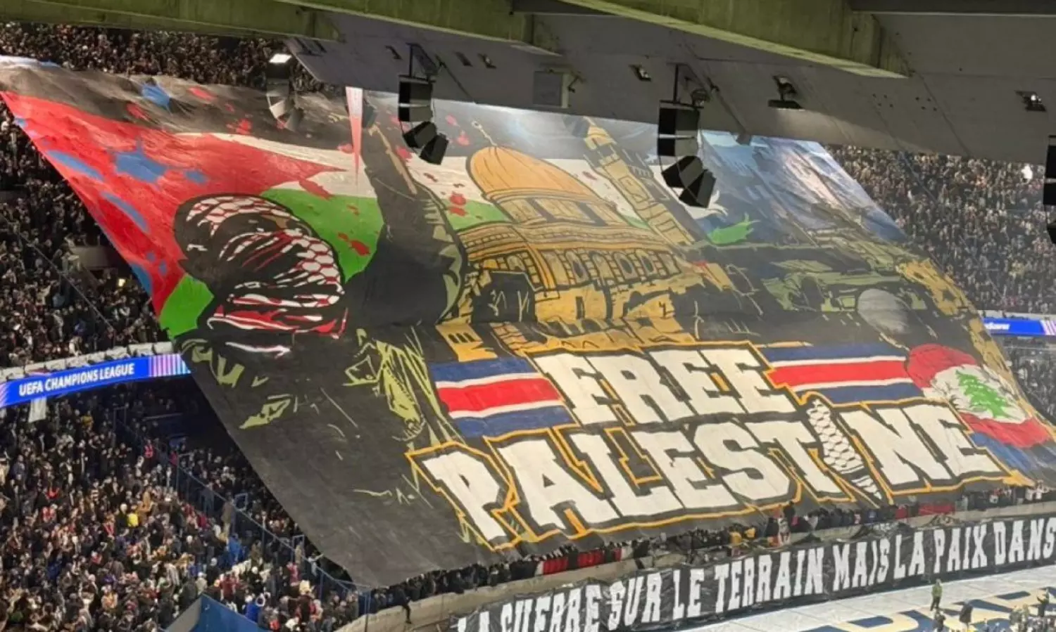 ചാമ്പ്യന്സ് ലീഗ് മത്സരത്തിനിടെ 'ഫ്രീ ഫലസ്തീന്' ബാനറുമായി പിഎസ്ജി ആരാധകര്