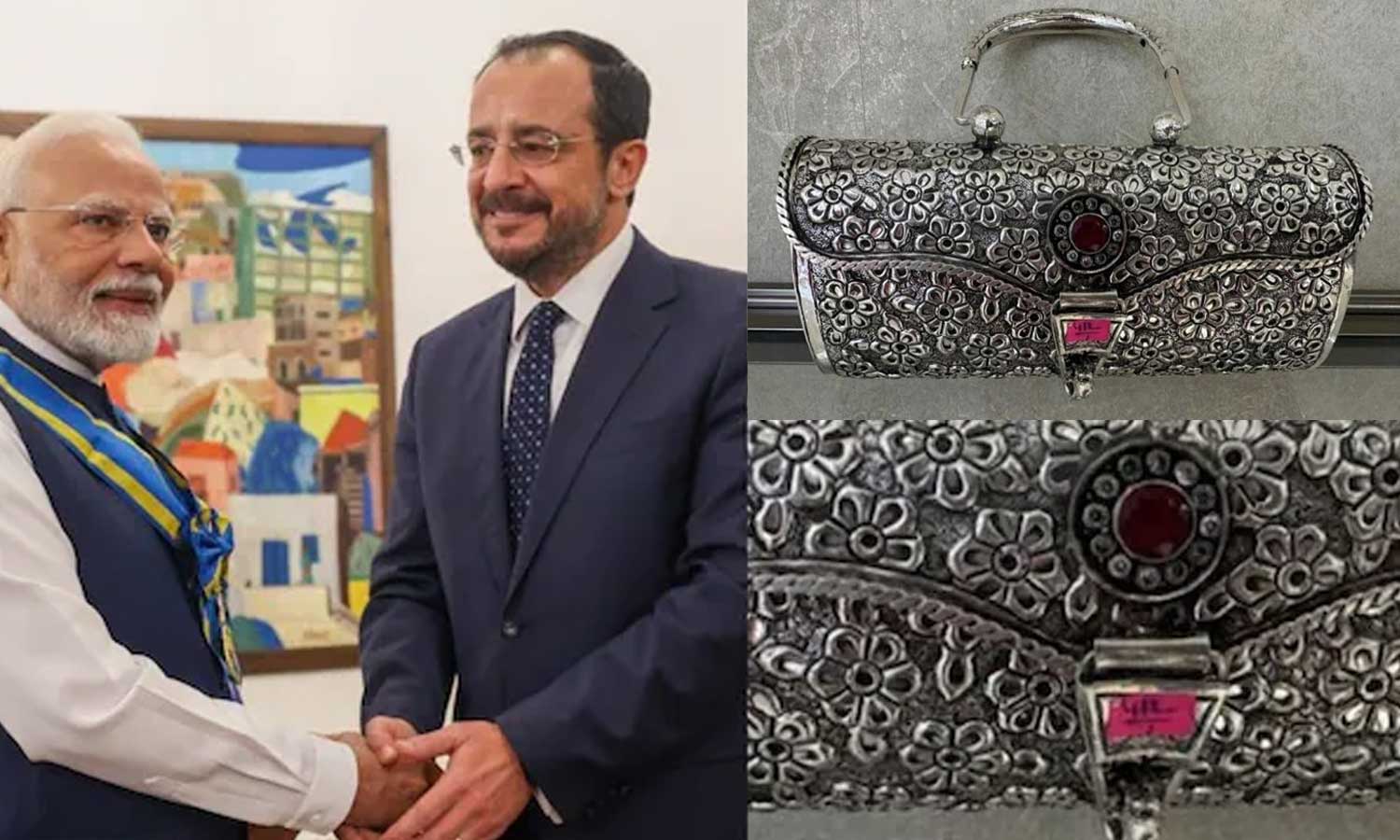 സൈപ്രസ് പ്രസിഡന്റ് നിക്കോസ് ക്രിസ്റ്റോഡൗലിഡിസിന് കശ്മീരി സിൽക്ക് കാർപെറ്റും പ്രഥമ വനിത ഫിലിപ്പ കർസേരയ്ക്ക് വെള്ളി ക്ലാച്ച് പഴ്സുമാണ് മോദി സമ്മാനമായി നൽകിയത്.