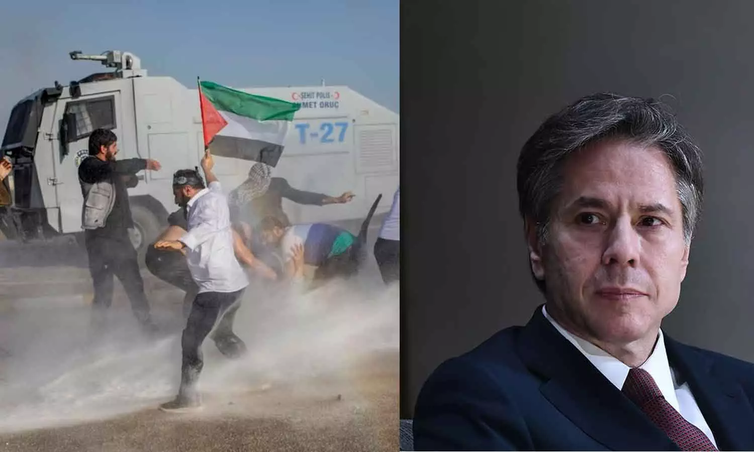 പ്രതിഷേധക്കാരെ പിരിച്ചുവിടാന് തുർക്കി പോലീസ് കണ്ണീർ വാതകവും ജലപീരങ്കിയും പ്രയോഗിച്ചു. ഗസ്സക്ക് മേല് ഇസ്രായേലിന്റെ നരനായാട്ട് തുടരുന്നതിനിടെ ചര്ച്ചകള്ക്കായാണ് ബ്ലിങ്കന് തുര്ക്കിയിലെത്തുന്നത്.