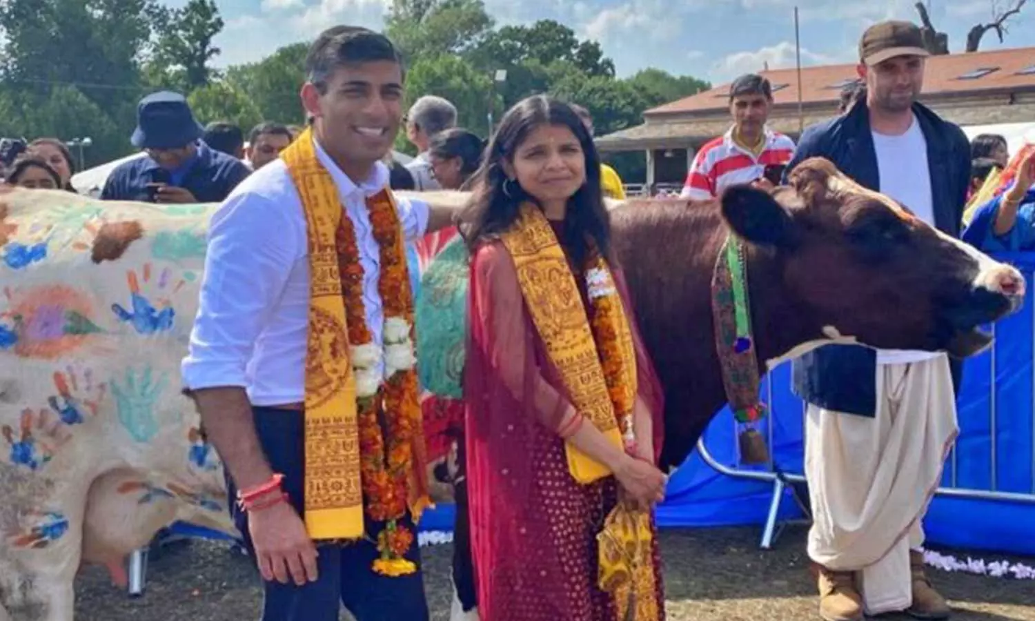 Summary: British PM candidate Rishi Sunak, wife worship cow in London