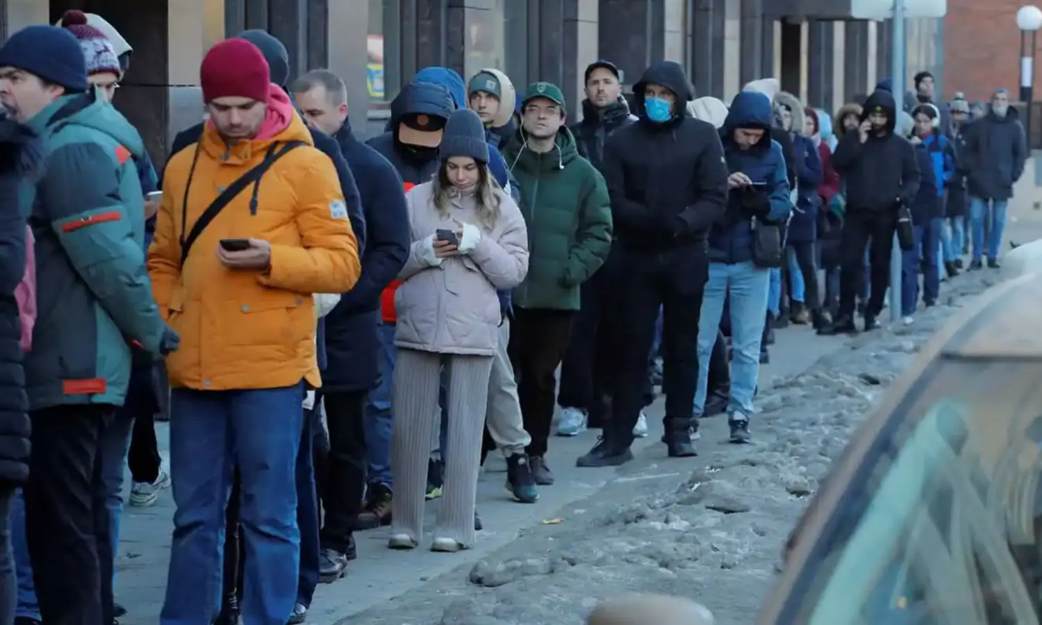റഷ്യയില് ബാങ്കുകള്ക്കും എടിഎമ്മുകള്ക്കും മുന്നില് നീണ്ടനിര