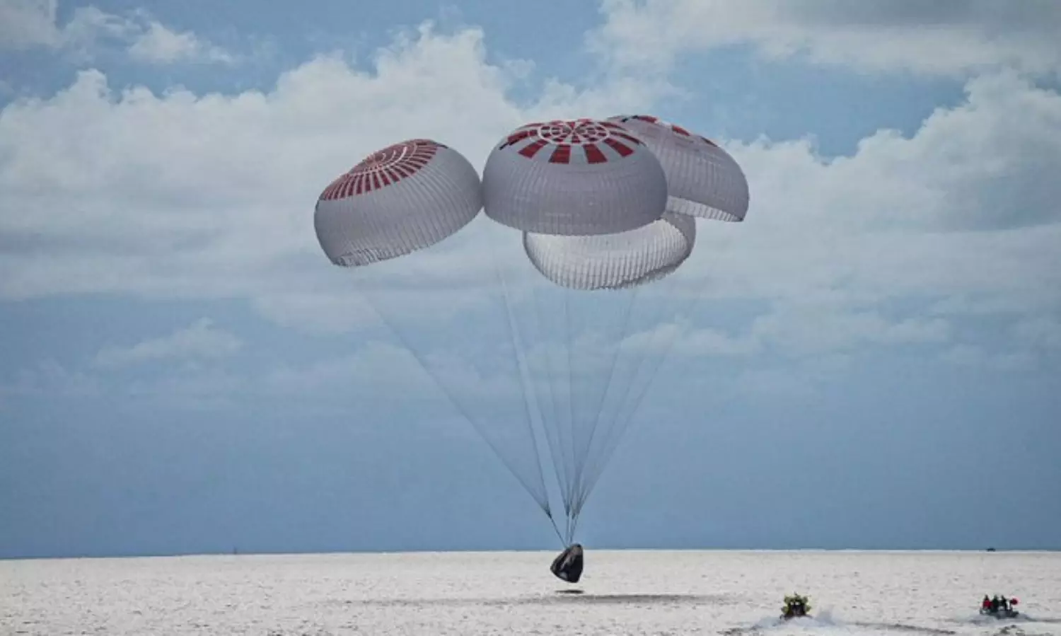 മൂന്ന് ദിവസം ബഹിരാകാശത്ത് കഴിഞ്ഞ ശേഷമാണ് സഞ്ചാരികളെ വഹിച്ചുള്ള പാരച്യൂട്ട് ഫ്ലോറിഡക്ക് സമീപം അറ്റ്ലാന്റിക് സമുദ്രത്തില് ഇറങ്ങിയത്.