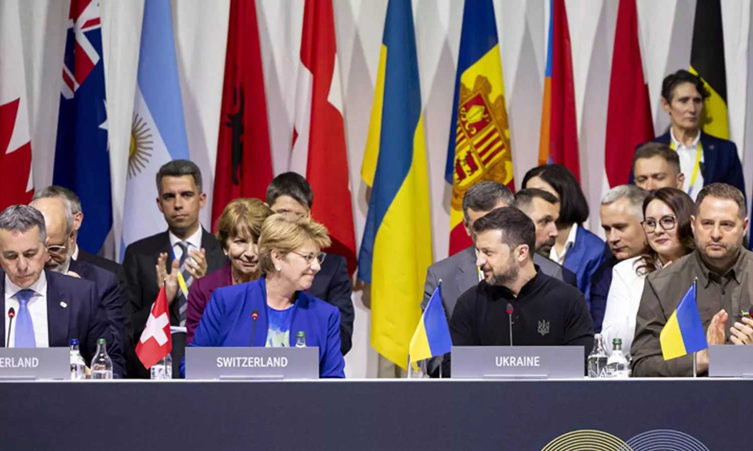ലൂസേണെ തടാകത്തിന് അഭിമുഖമായി ബർഗെൻസ്റ്റോക്ക് റിസോർട്ടിൽ നടന്ന സമ്മേളനം ലോകശ്രദ്ധ നേടി. ഒറ്റക്കെട്ടായി നിന്നുകൊണ്ടുള്ള ശ്രമങ്ങൾക്ക് യുദ്ധം അവസാനിപ്പിക്കാനും നീതിയുക്തമായ സമാധാനം സ്ഥാപിക്കാനും കഴിയുമെന്ന് യുക്രെയ്ൻ പ്രസിഡന്റ് വോലോഡിമിർ സെലെൻസ്കി പറഞ്ഞു. അന്താരാഷ്ട്ര നിയമം ലംഘിച്ചതിന് റഷ്യയെ പല നേതാക്കളും വിമർശിച്ചു.