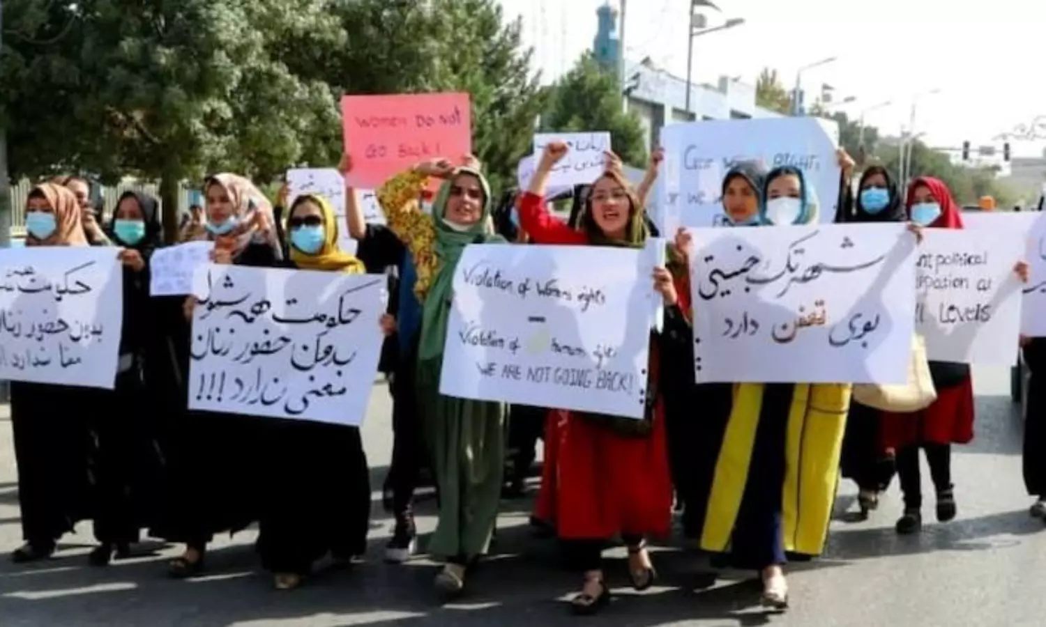 നൂറുകണക്കിനു സ്ത്രീകളാണ് പ്രതിഷേധത്തിന്റെ ഭാഗമായത്. പാകിസ്താനെതിരെ ഇവർ പ്ലക്കാർഡുകളുയർത്തുകയും മുദ്രാവാക്യം മുഴക്കുകയും ചെയ്തു. പ്രതിഷേധം ഹോട്ടലിലേക്കുള്ള വഴിയിൽ പ്രസിഡന്റിന്റെ കൊട്ടാരത്തിനുമുന്നിലെത്തിയതോടെ താലിബാൻ സൈന്യം വെടിയുതിർത്തു.