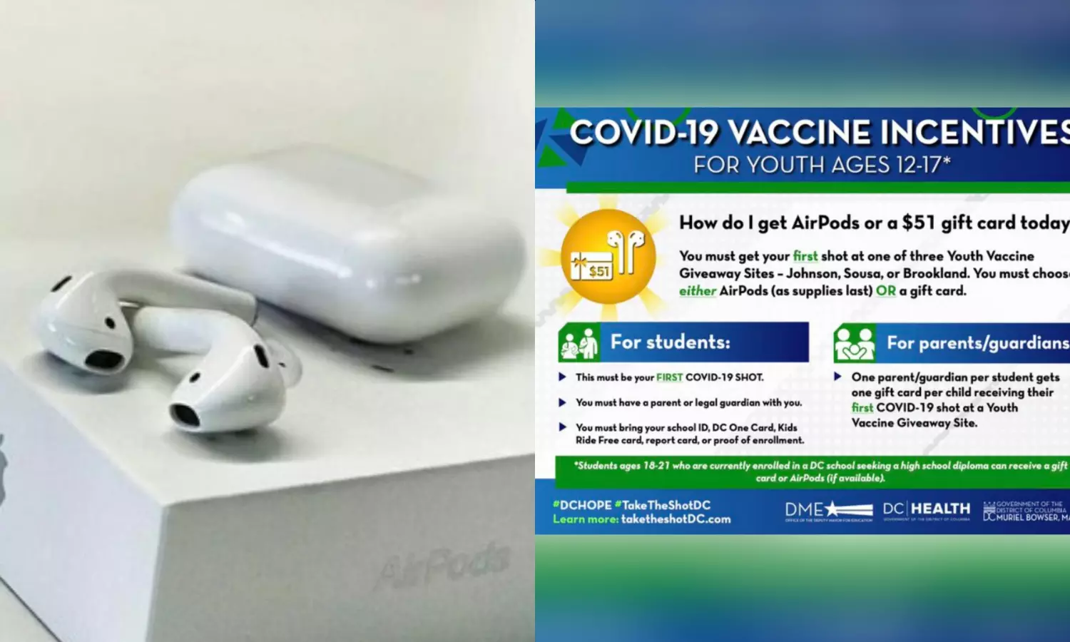 ആദ്യ ഡോസ് വാക്സിൻ സ്വീകരിക്കുന്ന കൗമാരക്കാർക്ക് ഒരു ആപ്പിൾ എയർപോഡാണ് സൗജന്യമായി ലഭിക്കുക. കൂടാതെ, ഭാഗ്യവാൻമാരാണെങ്കിൽ 25,000 ഡോളറിന്റെ സ്കോളർഷിപ്പോ ഐപാഡോ ലഭിക്കും. ഇതിനു പുറമെ ഗിഫ്റ്റ് കാര്ഡുകളുമുണ്ടാകും. വിദ്യാർഥികൾക്കായിരിക്കും പ്രഥമ പരിഗണന.