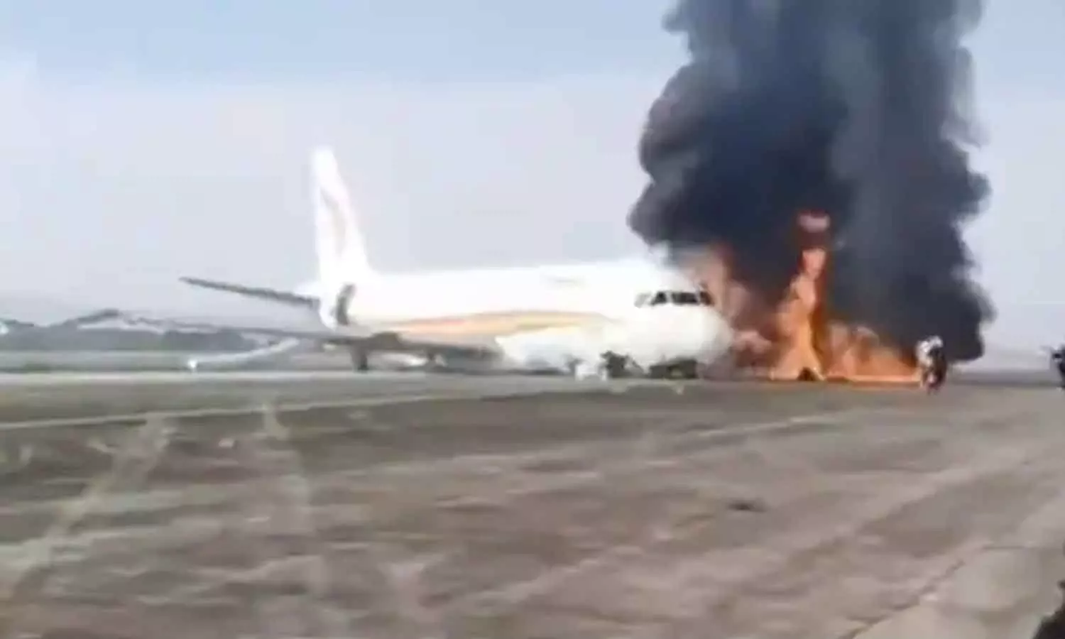 ചൈനീസ് യാത്രാ വിമാനം റൺവേയിൽനിന്ന് തെന്നിമാറി, തീപിടിച്ചു