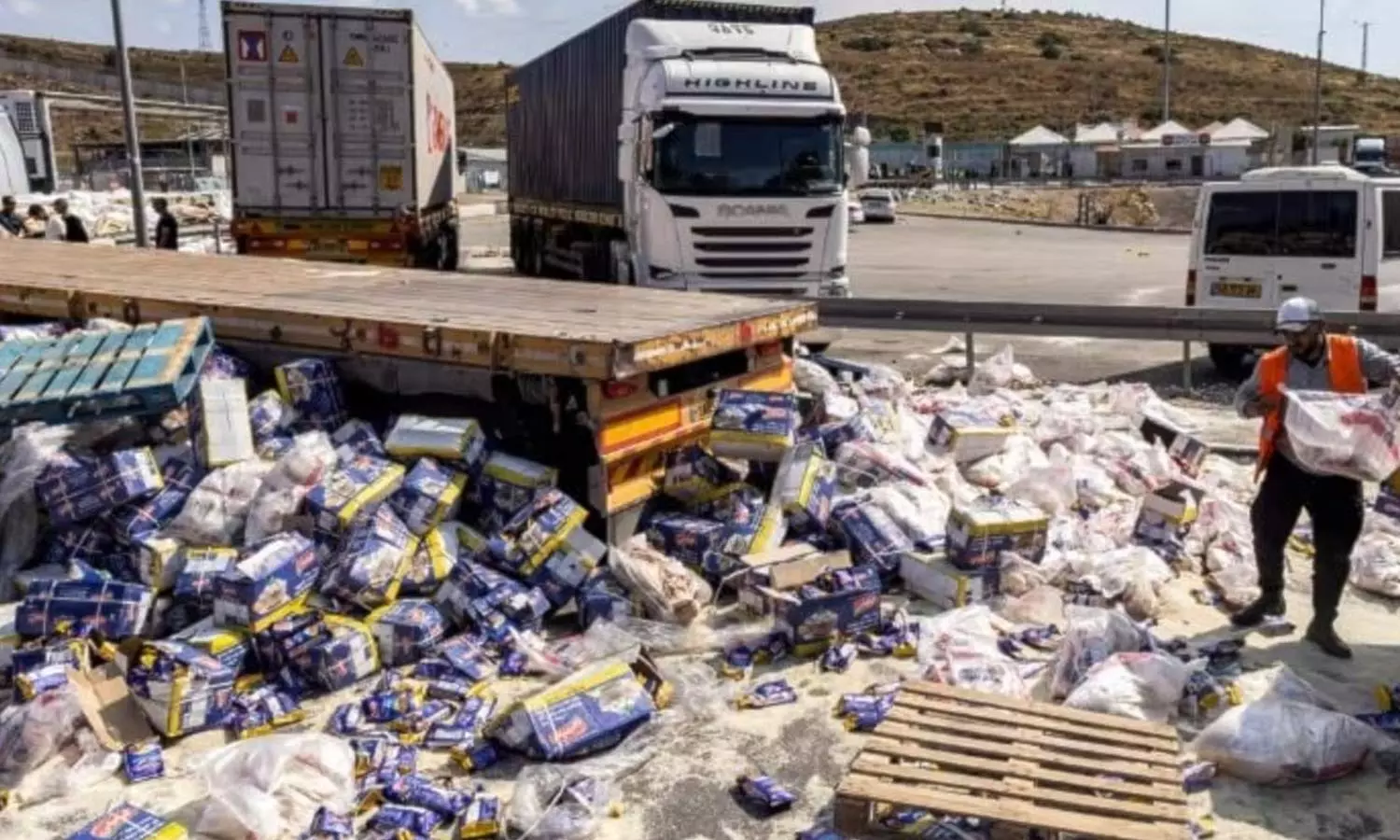 ലോറിയുടെ ഗ്ലാസുകൾ അടിച്ചുതകർക്കുകയും ടയറുകൾ പഞ്ചറാക്കുകയും ചെയ്തതോടെ സ്ഥിതിഗതികൾ മോശമായി. തുടർന്ന് ഇവർ വാഹനങ്ങളിൽ കയറി ഭക്ഷണപ്പൊതികൾ റോഡിലേക്ക് വലിച്ചെറിയാൻ തുടങ്ങി. വാഹനവ്യൂഹത്തിന് അകമ്പടി സേവിച്ചിരുന്ന ഇസ്രായേൽ സൈനികർ ഇതെല്ലാം നോക്കിനിൽക്കുന്നുണ്ടായിരുന്നു. സൈന്യം അവരുടെ കൂടെയാണ് നിന്നത്.