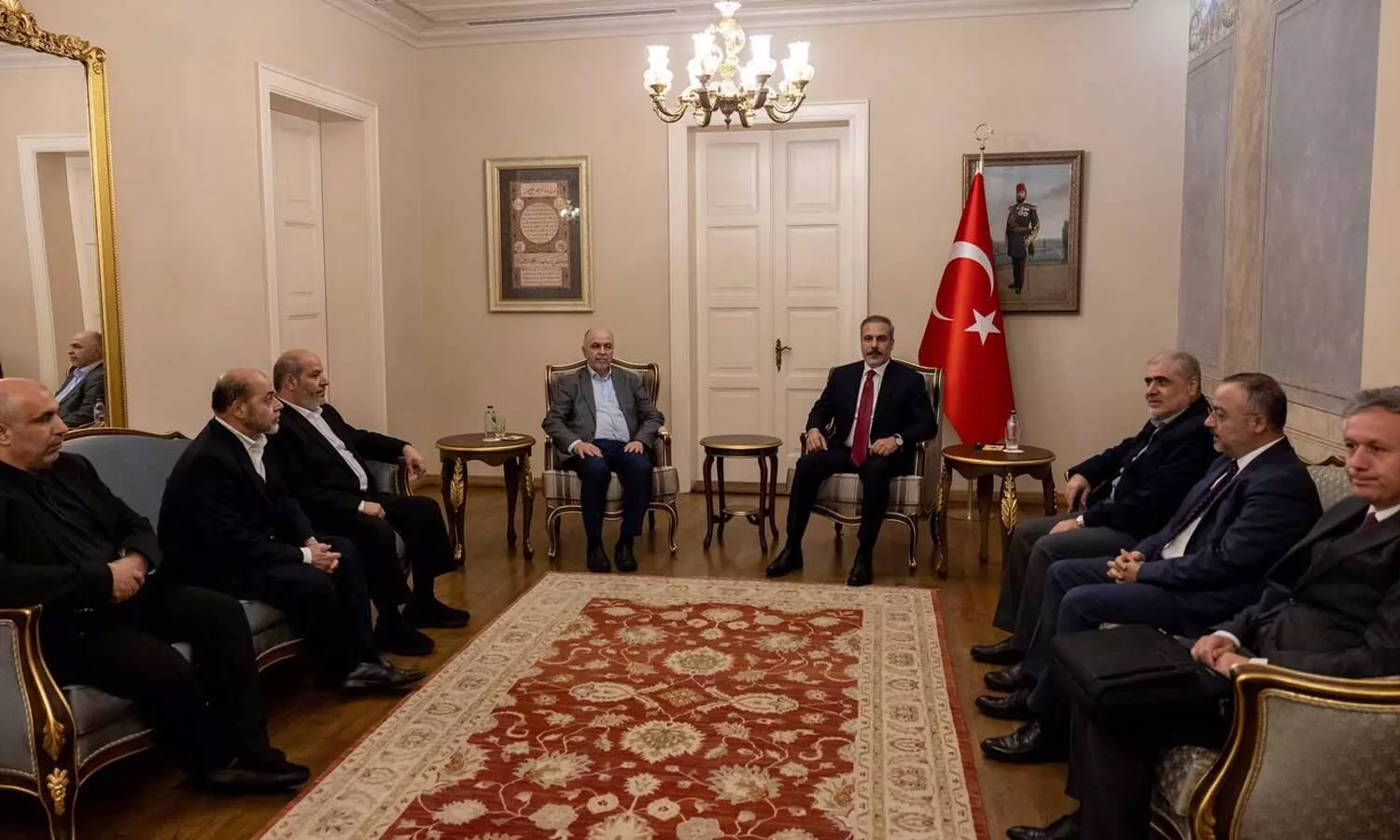 Summary: Turkish Foreign Minister Hakan Fidan meets Hamas leaders, including Mohammad Darwish, the head of the Hamas Shura Council, in Istanbul
