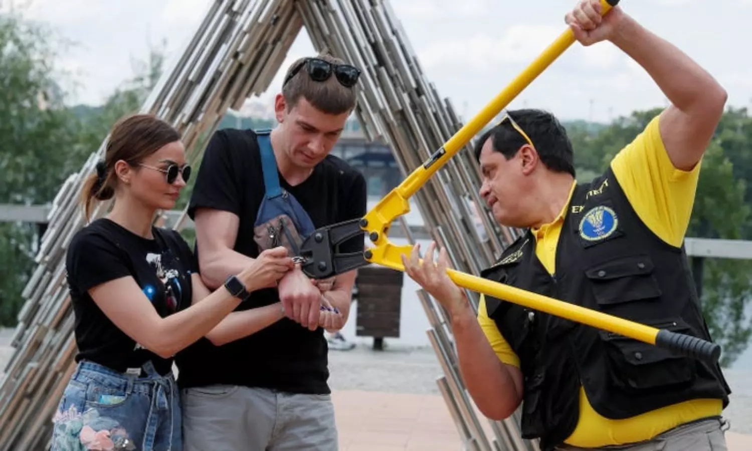 ഭാന്ത്ര് പിടിച്ചാൽ ചങ്ങലയ്ക്കിടാറുണ്ട്. എന്നാൽ, പ്രേമം തലയിൽ കയറി ചങ്ങലയ്ക്കിടുന്നത് കേട്ടിട്ടുണ്ടോ?! ഉക്രൈനിലെ കമിതാക്കളാണ് പ്രണയം തകരാതിരിക്കാനെന്നു പറഞ്ഞു പരസ്പരം കൈകൾ ചേർത്തുപിടിച്ച് വിലങ്ങില് ബന്ധിപ്പിച്ചത്. എന്നാലോ, അധികം സഹിക്കാനാകാതെ ഒടുവില് ഇരുവരും പിരിയുകയും ചെയ്തു!