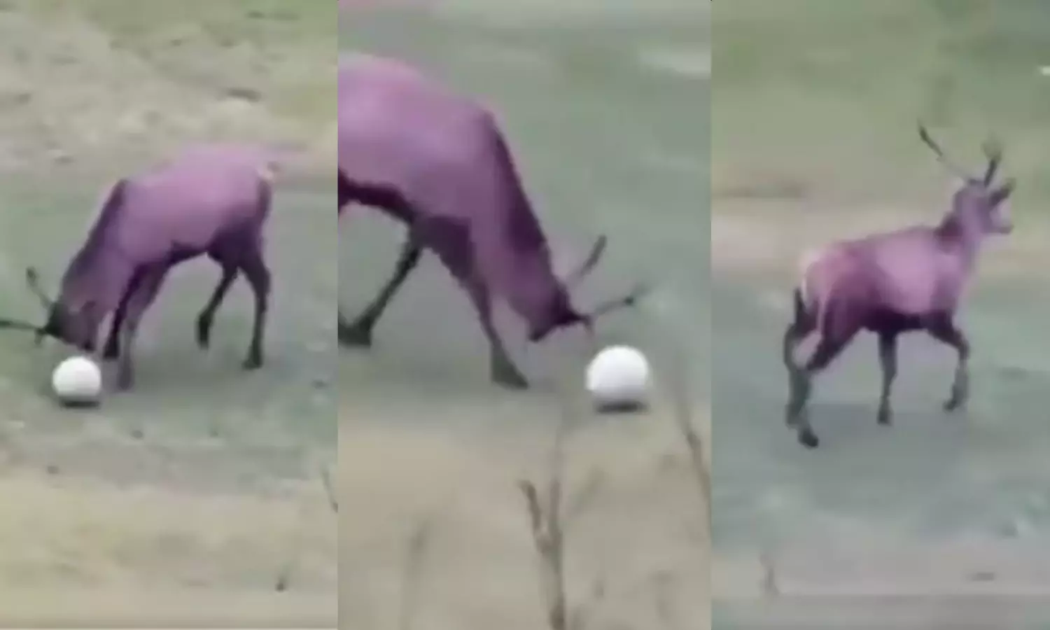 ഇതൊക്കെ എന്ത്...! കൊമ്പുകൊണ്ട് ഗോളടിച്ച് മാനിന്റെ ആഘോഷം; വീഡിയോ വൈറൽ