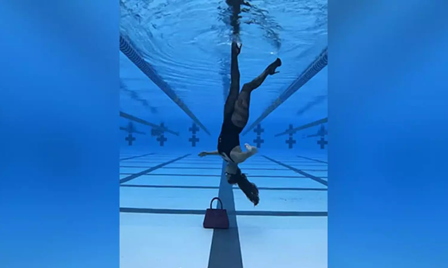 നീന്തല്ക്കുളത്തില് തലകീഴായി നടന്ന് യുവതി; വിഡിയോ വൈറല്