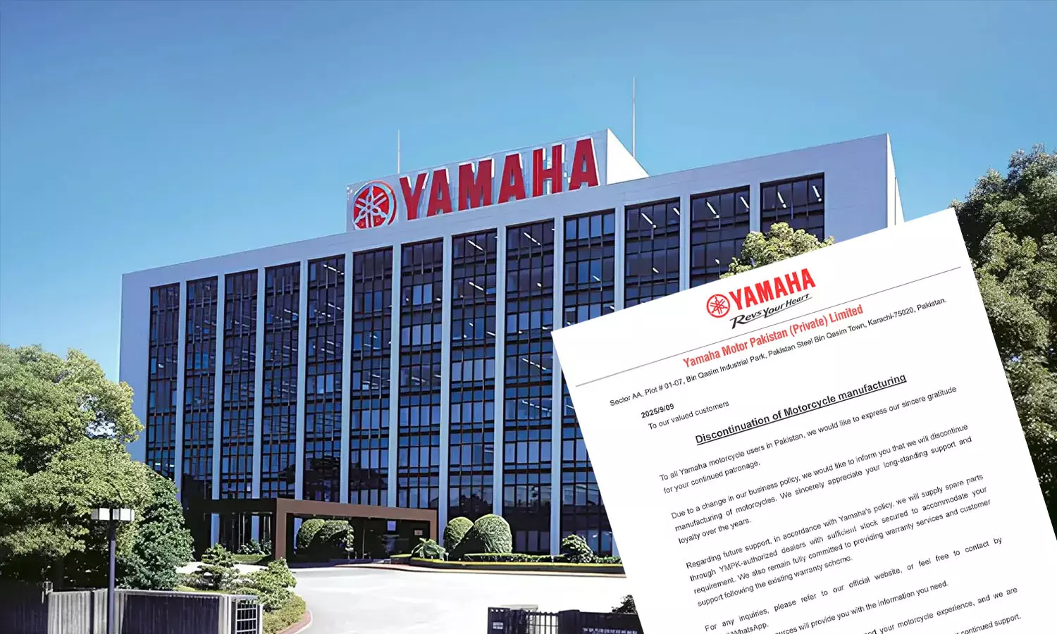 'വർഷങ്ങളായി നിങ്ങൾ നൽകിയ ദീർഘകാല പിന്തുണക്കും വിശ്വസ്തതക്കും ഞങ്ങൾ ആത്മാർത്ഥമായി നന്ദി പറയുന്നു.' കമ്പനി ഉപഭോക്താക്കളെ അഭിസംബോധന ചെയ്ത സന്ദേശത്തിൽ പറഞ്ഞു. ഉൽപ്പാദനം നിർത്തലാക്കുമ്പോഴും യമഹ മോട്ടോർ പാകിസ്താൻ (YMPK) അംഗീകൃത ഡീലർമാർ വഴി സ്പെയർ പാർട്സ്, വാറന്റി കവറേജ് എന്നിവയുൾപ്പെടെ വിൽപ്പനാനന്തര സേവനങ്ങൾ നൽകുന്നത് തുടരുമെന്ന് യമഹ ഉറപ്പ് നൽകി.