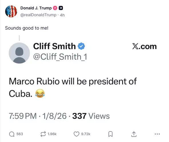 'മാർകോ റൂബിയോ ക്യൂബ പ്രസിഡന്റാവുന്നത് എനിക്ക് സമ്മതമാണ്'; ചർച്ചയായി ട്രംപിന്റെ പുതിയ സോഷ്യൽ മീഡിയ പോസ്റ്റ്